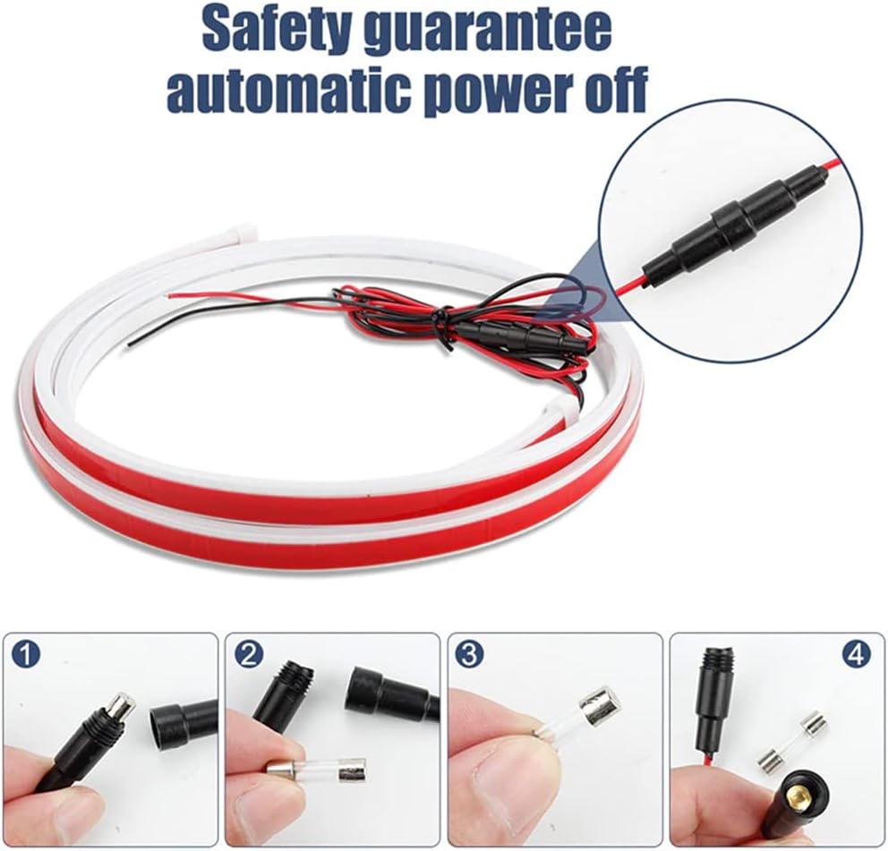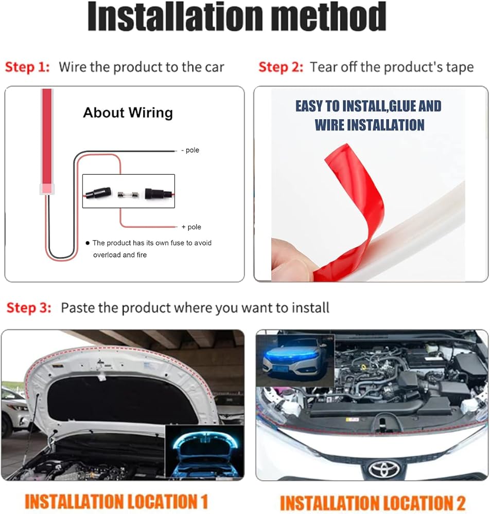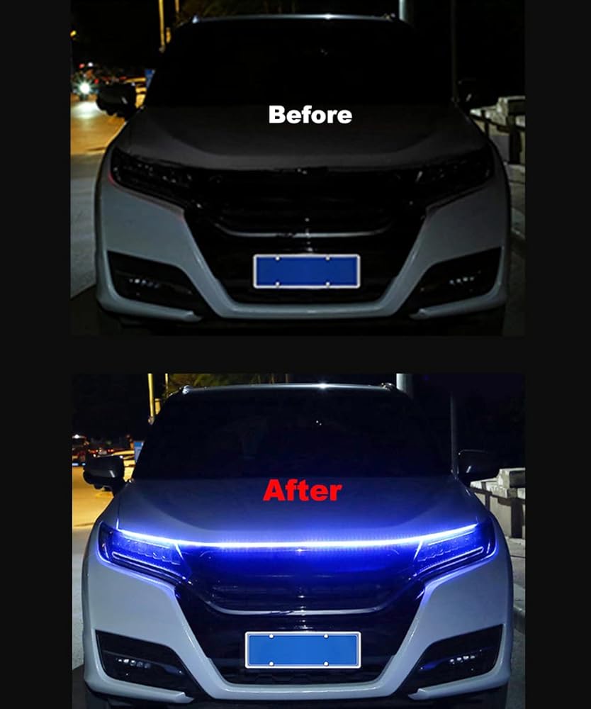 • 【مرن ومقاوم للماء】شريط LED لغطاء السيارة هذا مرن للغاية ومقاوم للماء وهو ناعم وسهل الانحناء. يمكنك قطع شريط ضوء غطاء محرك السيارة بأي طول حسب الحاجة. أضواء شريط LED المرنة لضوء النهار للسيارة متوافقة مع نماذج غطاء محرك السيارة المختلفة. شريط غطاء محرك السيارة LED عبارة عن حبات مصباح عالية الجودة وسطوع فائق.