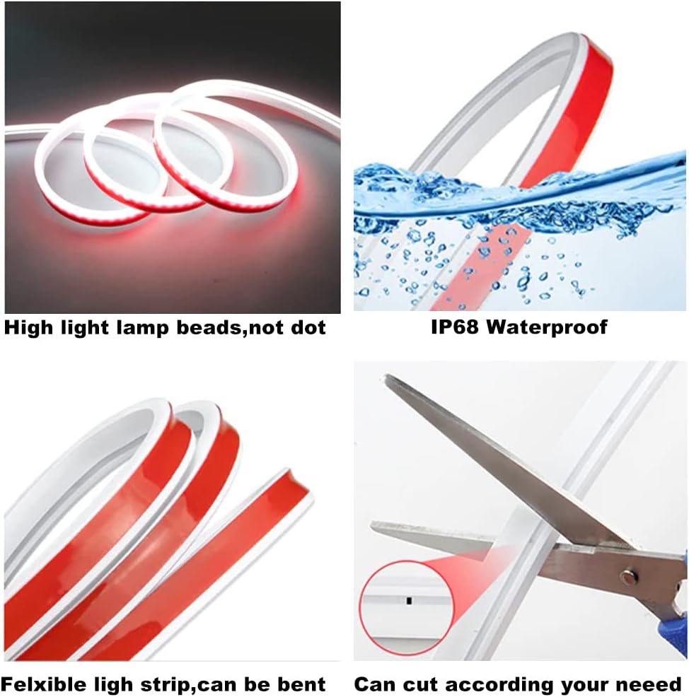 • ديكور مثالي لسطح السيارة الخارجي: تطبيق شريط LED لغطاء السيارة لمركبات 12 فولت وتخييم السيارة RV SUV ومناسب لـ 99% من طراز السيارة، ويمكن استخدامه لأضواء غطاء السيارة، وإضاءة الجري النهارية، وإضاءة الدواسات، وإضاءة صندوق السيارة وما إلى ذلك.