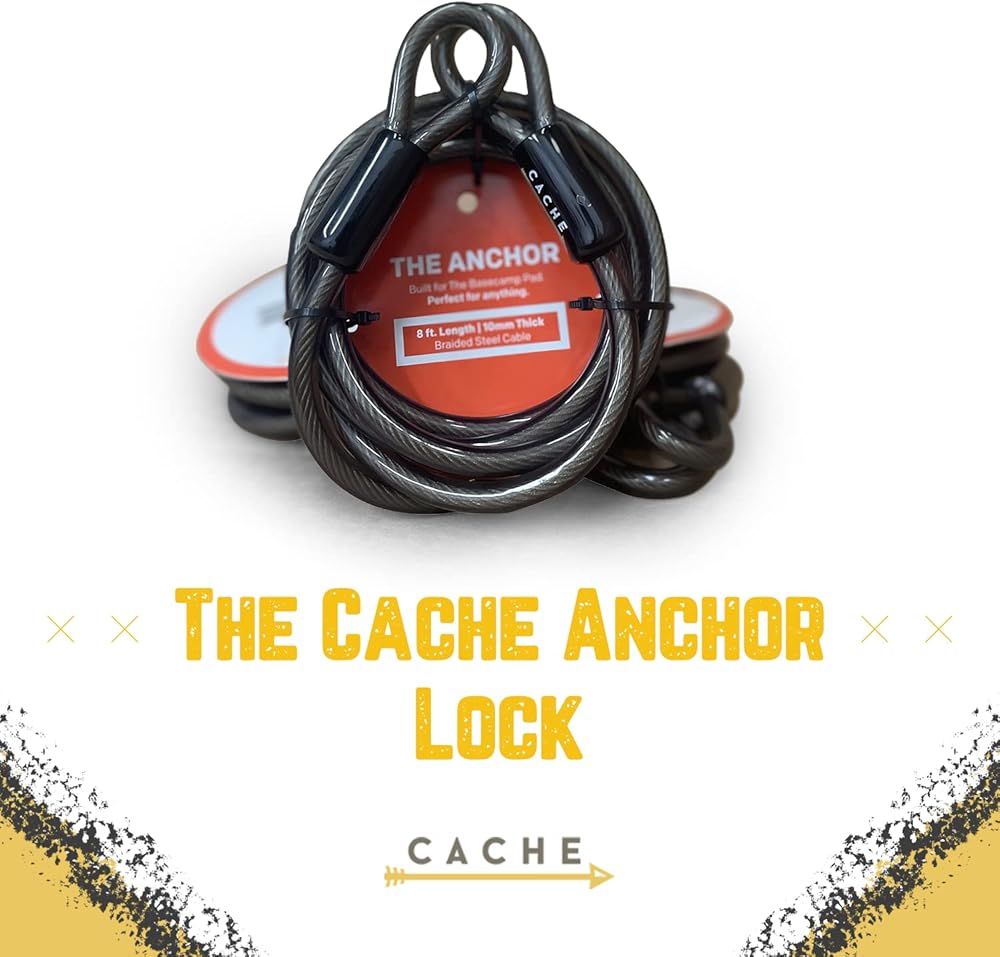 Basecamp Buddy: بينما يمكن استخدام قفل التثبيت هذا على منتجات مختلفة تتطلب كابلًا أطول، فإن كابل الأمان هذا لا يزال مثاليًا للاستخدام مع لوحة Basecamp Pad أو نظام Basecamp من Cache.