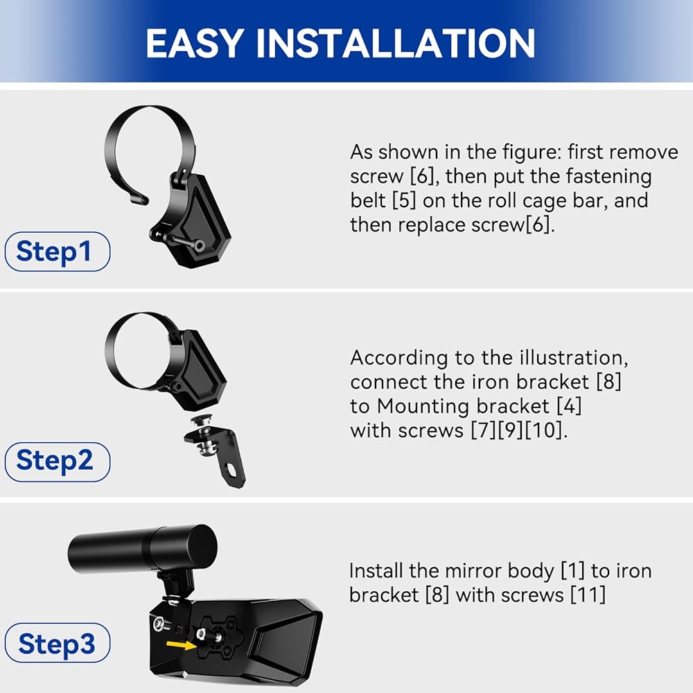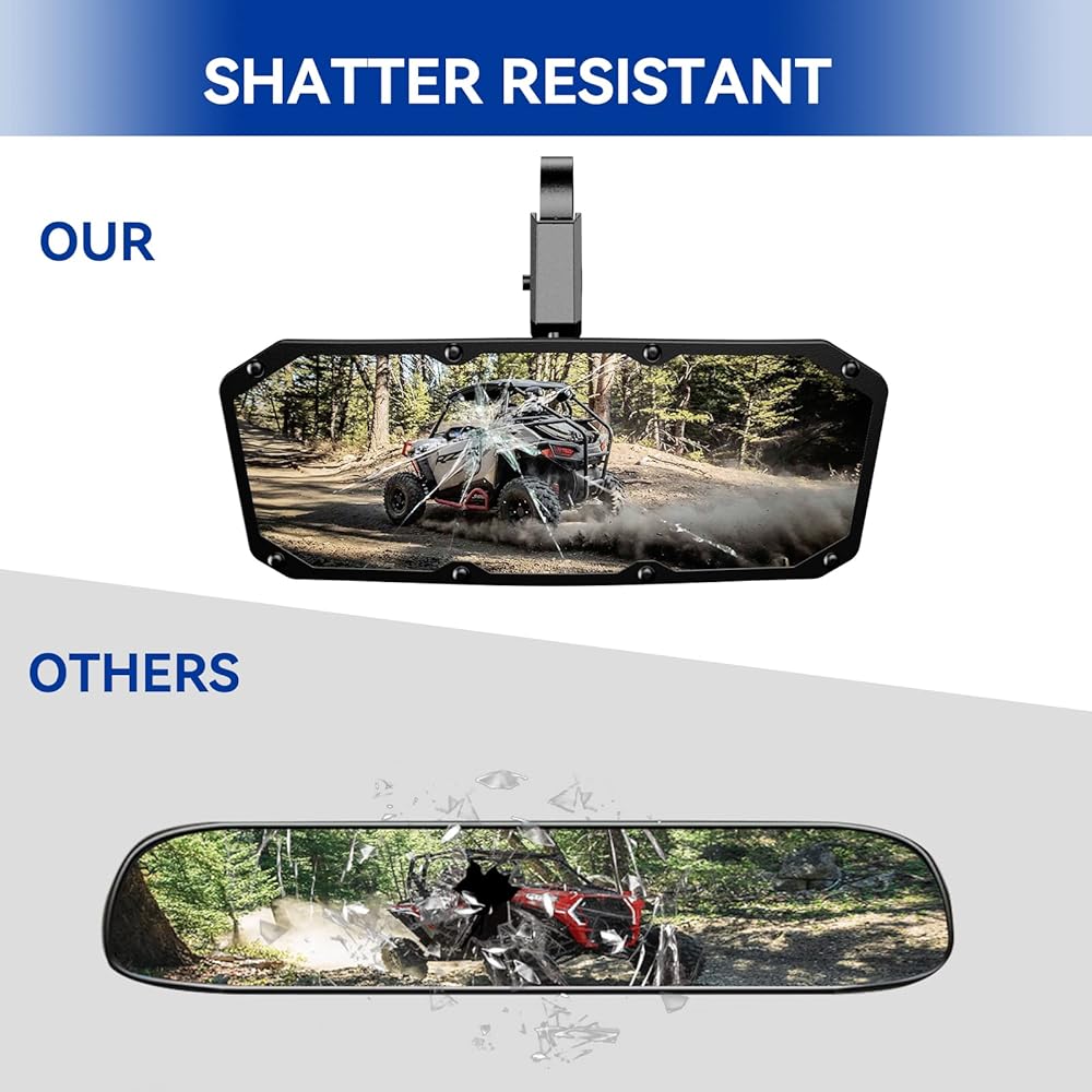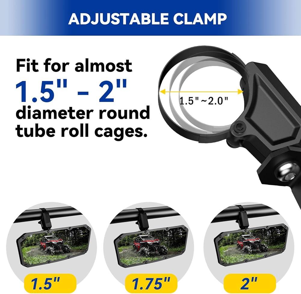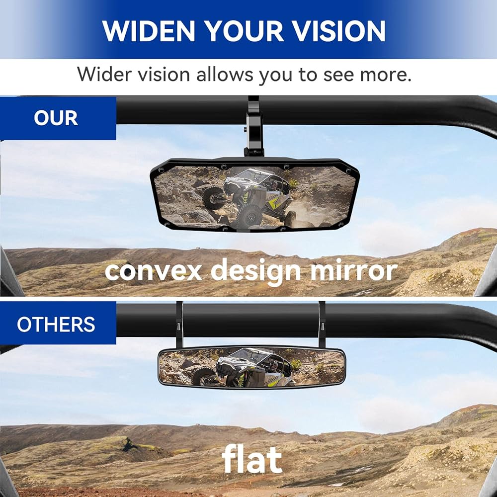 【افتح رؤيتك】ابق على دراية بالبيئة المحيطة بك على الممرات من خلال مرآة الرؤية الخلفية المحدبة المميزة. مع التصميم المحدب، سوف تحصل على رؤية بانورامية للممر وأي سيارات خلف UTV الخاص بك، يمكنها القضاء على البقع العمياء وزيادة سلامتك بشكل كبير.
