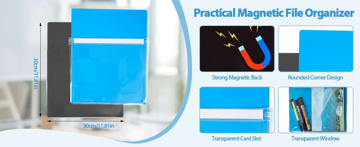 【المادة】حامل الملفات المغناطيسي مصنوع من مادة البولي فينيل كلوريد الشفافة والمغناطيس، ناعم وعديم الرائحة، ليس من السهل تمزيقه، قوي ومتين، وسهل الحركة. الحجم 30*24 سنتيمتر/11.81*9.44 بوصة. سيوفر مساحة كبيرة ويحافظ على نظافة بيئة الدراسة أو العمل.