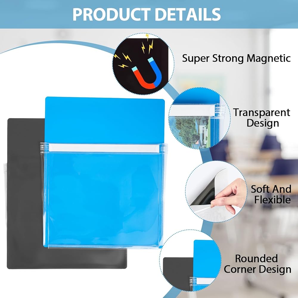 [تصميم فريد] تصميم خلفي مغناطيسي، يمكن لصقه بسهولة على أي سطح مغناطيسي أو معدني. تصميم مفتوح كبير يجعل من السهل إدخال المستندات وإخراجها. تساعد الزوايا الدائرية على منع الخدوش. تسمح لك الشرائط القابلة للكتابة بتسمية المستندات وتصنيفها.