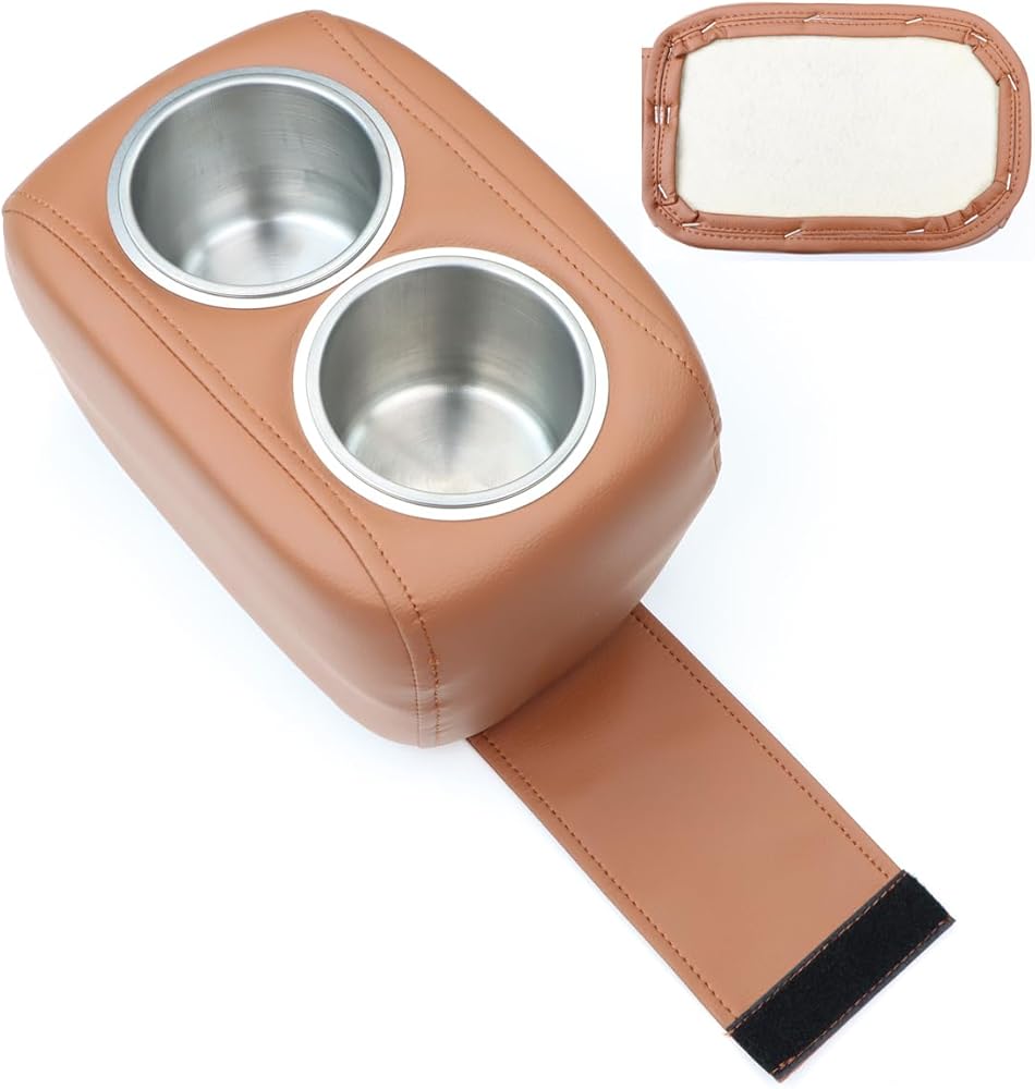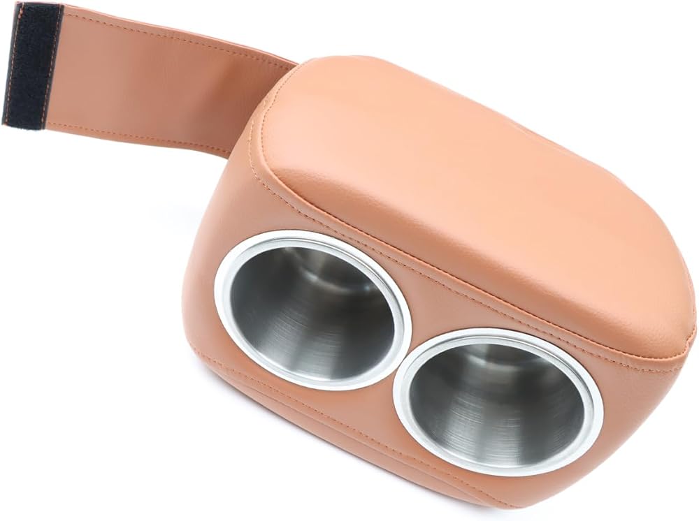 حامل أكواب بونتون المقاوم للصدأ، حامل مشروبات بونتون مزدوج، حامل أكواب محمول للقوارب واليخوت والمركبات الترفيهية والسيارة (بني)