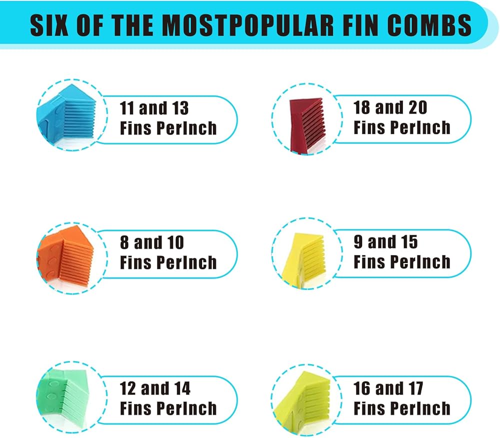 Packing List: You will receive 1 ring fin comb and 1 5.7" x 0.8" stainless steel radiator fin comb, six fin combs covering twelve different sized fins in one convenient ring, to accommodate fins with different spacing. Ring diameter is 2.6" and comb measures 0.8" x 4.6".