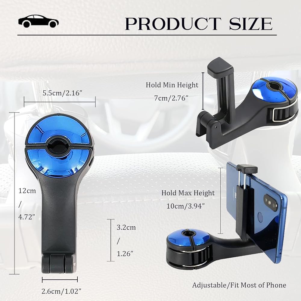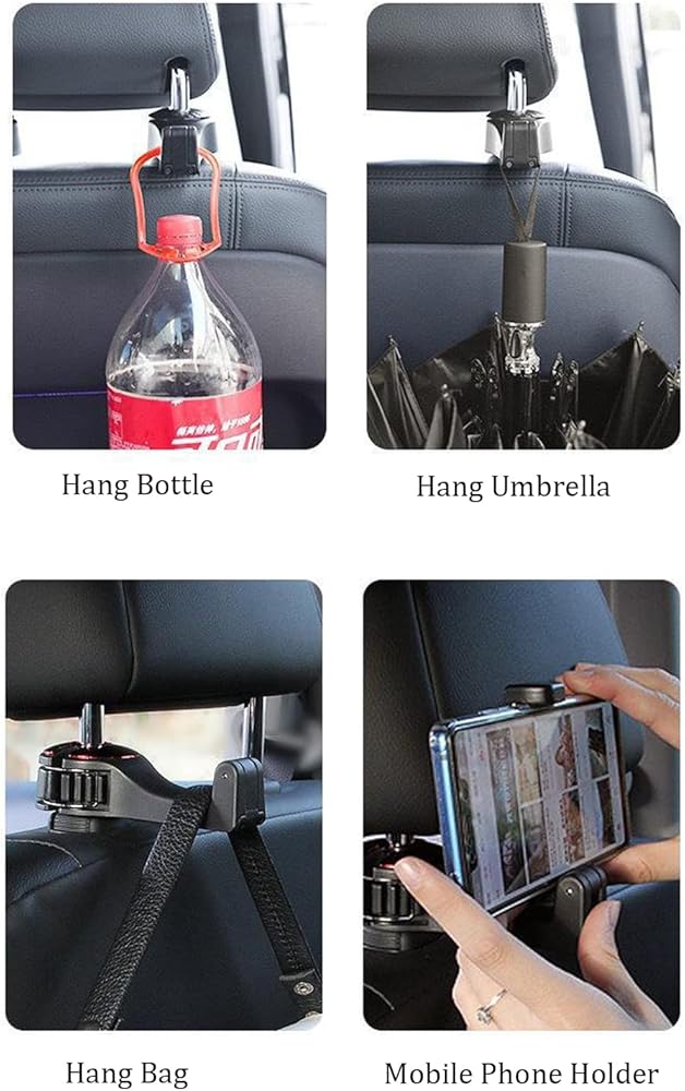 ✔【التصميم】يجمع خطاف مقعد السيارة 2 في 1 المصمم حديثًا بين خطاف مسند رأس السيارة وحامل الهاتف. يضيف حامل الهاتف القابل للطي ميزات إضافية.