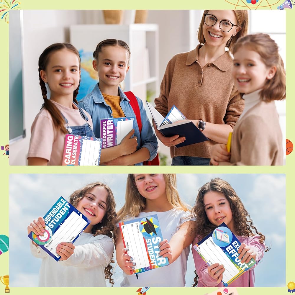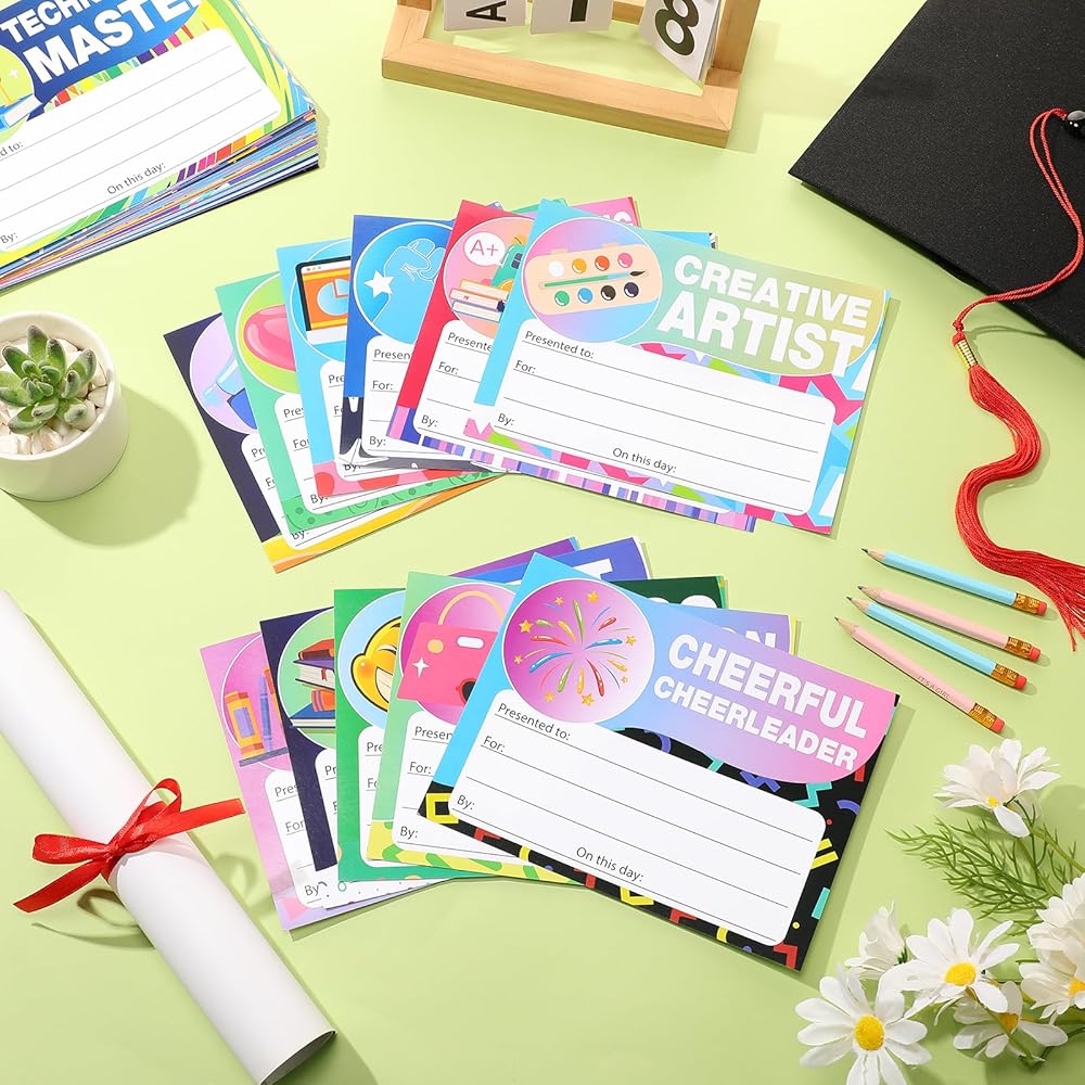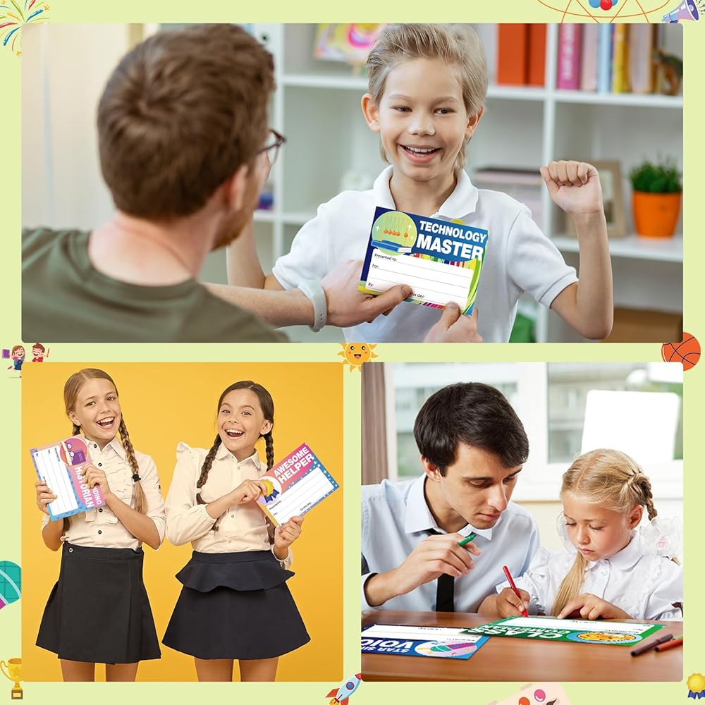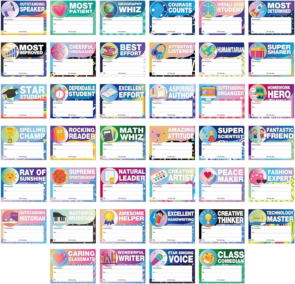 Diverse and Vibrant Designs: our award certificates feature multiple and unique designs that will appeal to every student; From hearts to graduation caps, medals, basketballs, pencils, and other elements, these awards display engaging imagery you'll love; They can ignite your students' excitement, making these awards memorable and pleasurable