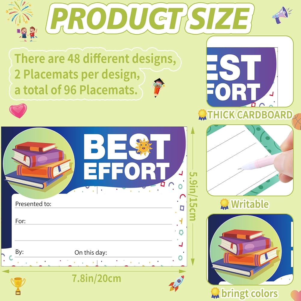 Ideally Sized: these certificates for classroom awards are roughly 7.8 x 5.9 inches, ideally sized to ensure smooth and comfortable writing; Their size provides ample space for personalization while still making a convenient addition to any display or wall mounting; The ideal balance between size and function