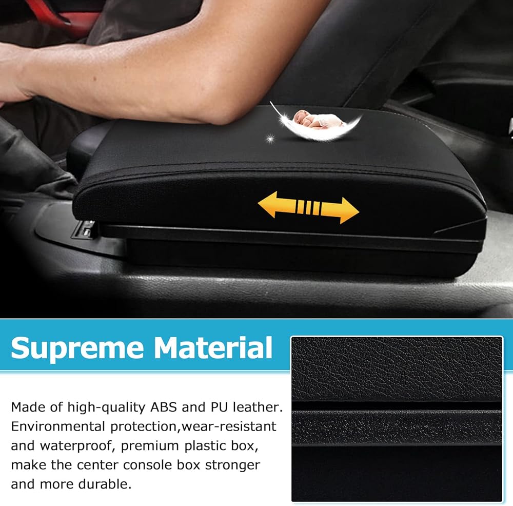 مادة فائقة الجودة —— مصنوعة من جلد ABS وبولي يوريثان عالي الجودة. حماية للبيئة، صندوق بلاستيكي فاخر مقاوم للاهتراء ومقاوم للماء، يجعل صندوق الكونسول المركزي أقوى وأكثر متانة.
