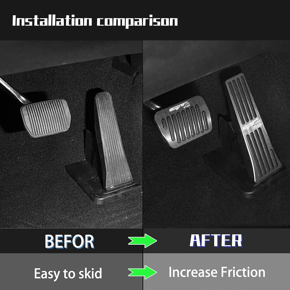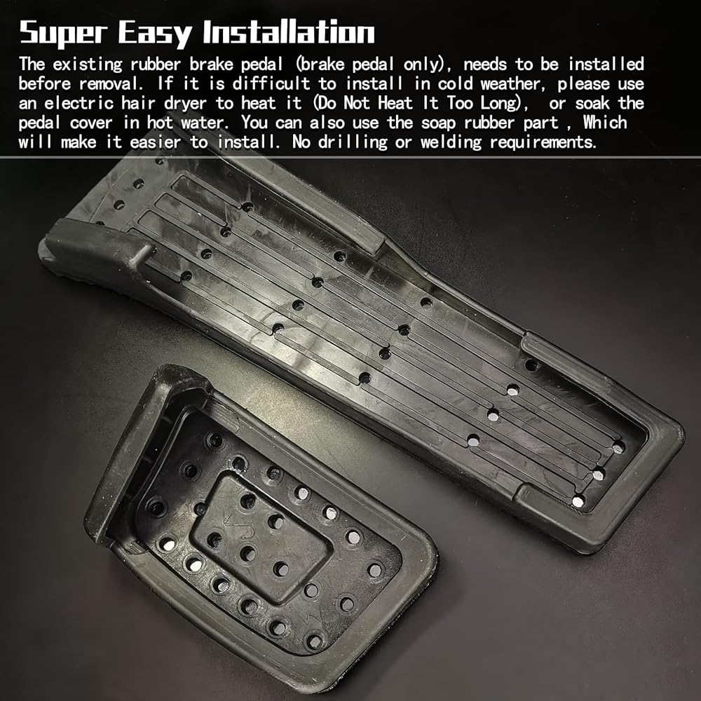 • 🚗Easy Installation🚗: No drilling or welding required. To install a new brake pedal cover, remove the existing rubber from the brake pedal and install it from left to right. Finally, you just need to install the new accelerator pedal cover directly.