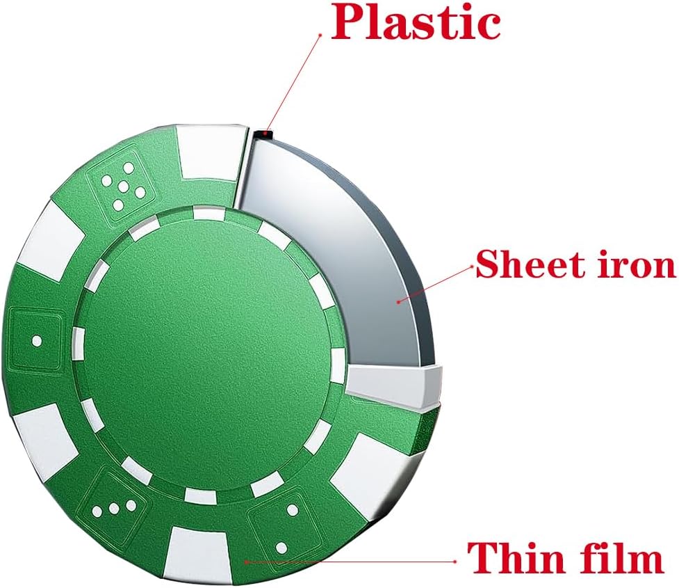 جودة عالية - مجموعة رقائق البوكر مصنوعة من مادة أكريلونتريل بوتادين ستايرين عالية الجودة وصديقة للبيئة مغلفة بقلب معدني، صلبة ومتينة وليس من السهل إتلافها، وسطح الجودة النبيلة رقيق. الحقيبة المخملية مصنوعة من مادة مخملية ناعمة ومتينة وصديقة للبشرة مع رباط من أجل الرقي والأناقة. وزن رقائق البلاك جاك هذه هو 11.7 جم/0.41 أونصة، مقاس القطر: 40 مم/1.57 بوصة، السُمك: 3 مم/0.11 بوصة.