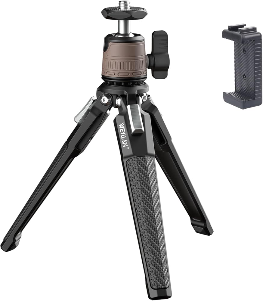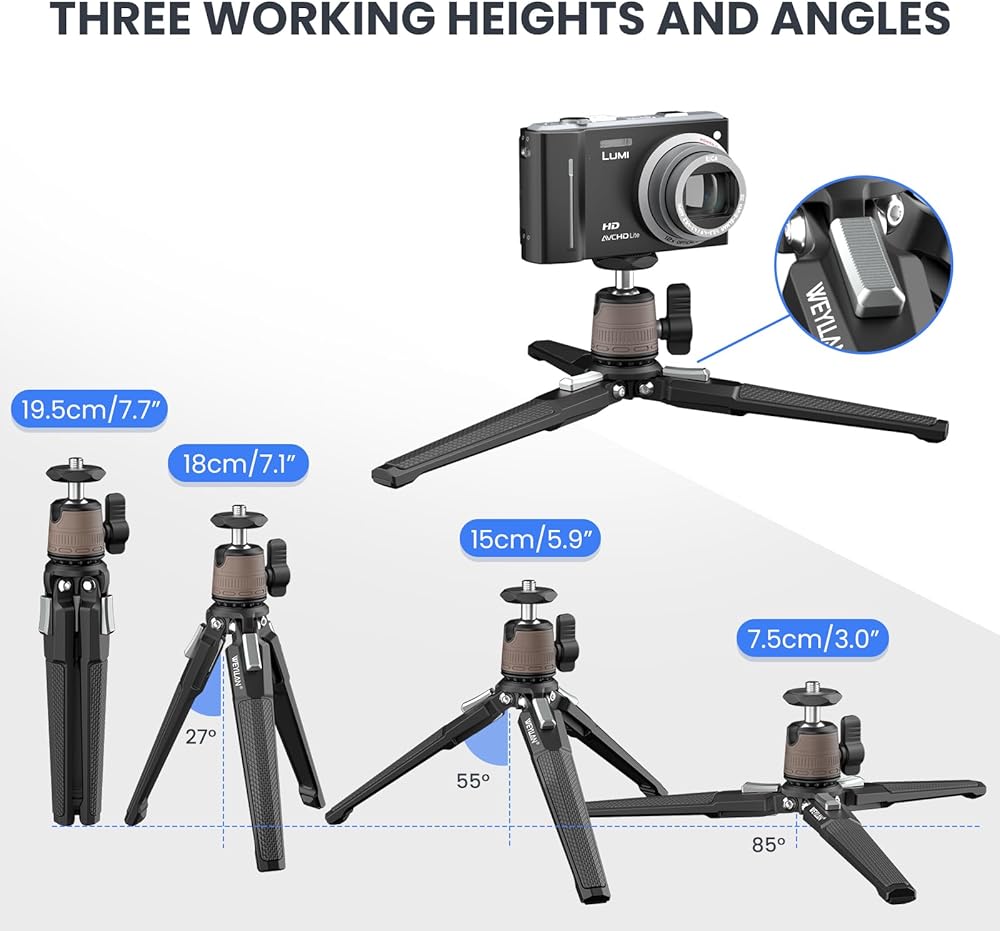 • 👍(قوي ومتين) حامل ثلاثي صغير من WEYLLAN DT3 مصنوع من معدن عالي الجودة، ومجهز برأس كروي صغير، والوزن الصافي للحامل ثلاثي القوائم الصغير DT3 هو 0.66 رطل/300 جرام فقط والحد الأقصى للحمل 6.6 رطل/3 كجم.