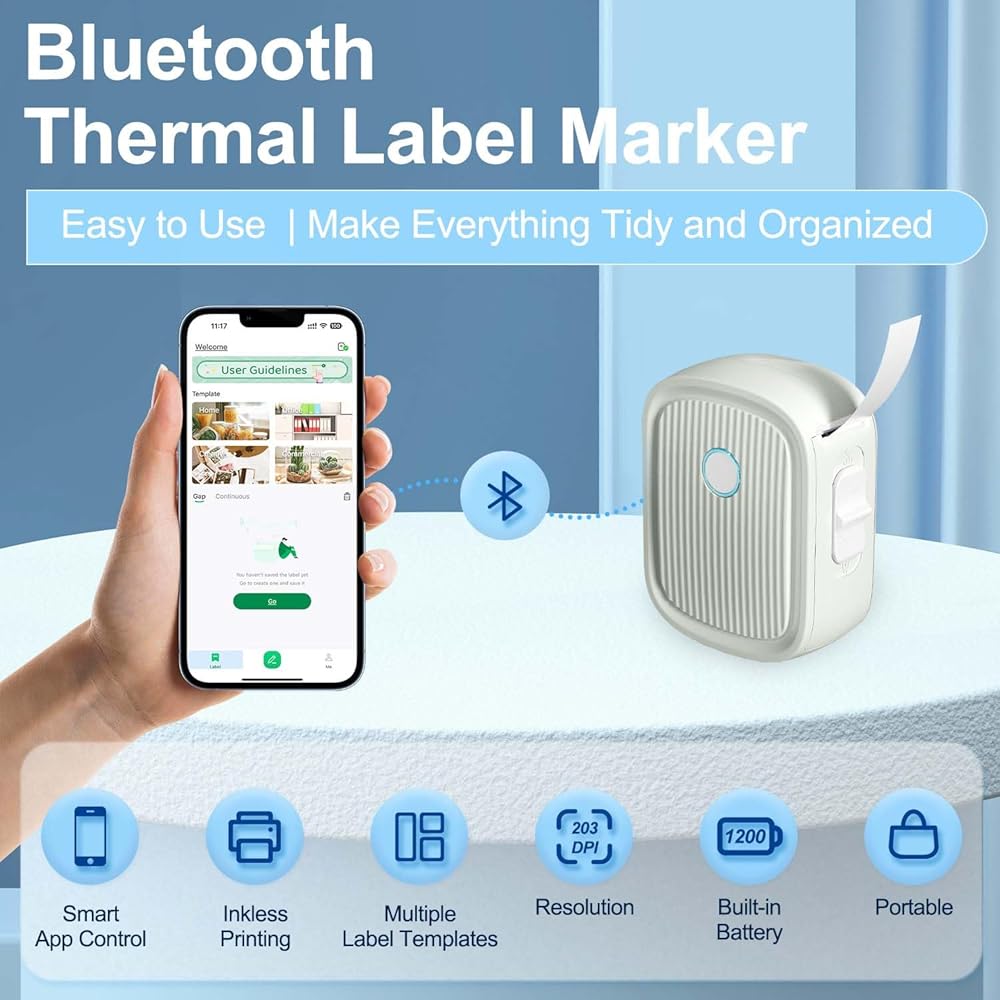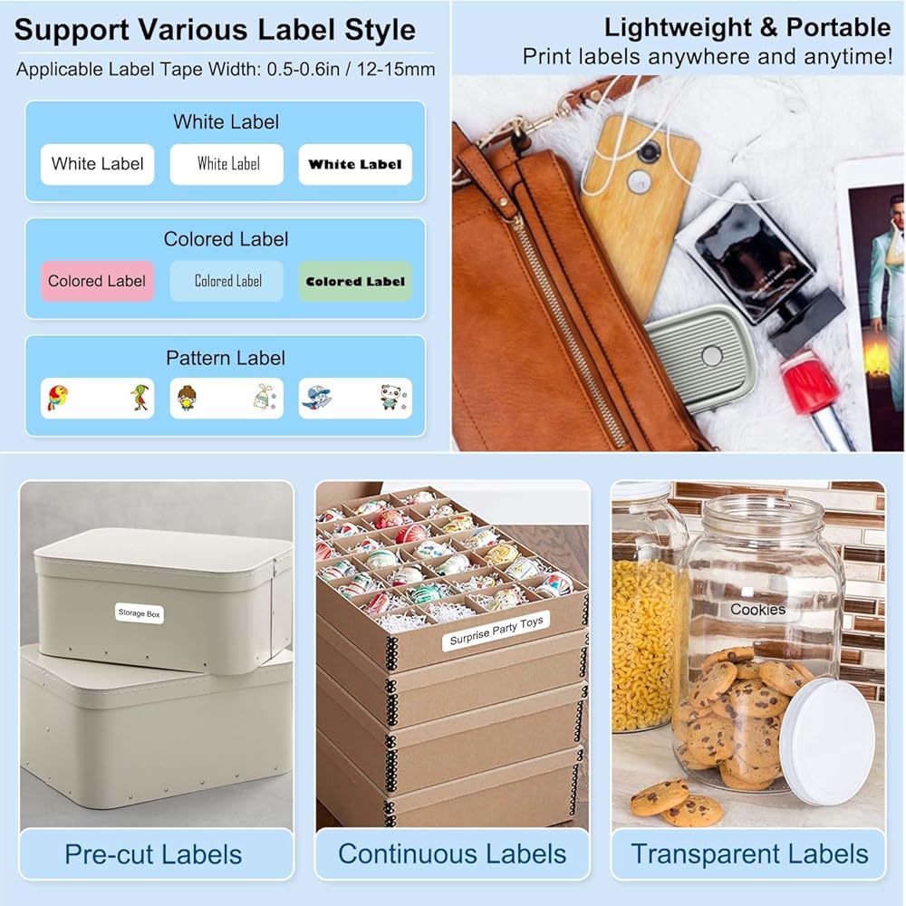 • 𝐓𝐚𝐤𝐞 𝐀𝐧𝐲𝐰𝐡𝐞𝐫𝐞 𝐒𝐦𝐚𝐥𝐥 𝐋𝐚𝐛𝐞𝐥 𝐏𝐫𝐢𝐧𝐭𝐞𝐫: مقارنة مع صانعي الملصقات التقليديين، أصبح أصغر حجمًا وأكثر ذكاءً. الحجم الصغير (3.54 × 2.75 × 1.38 بوصة) يجعلها آلة صنع ملصقات محمولة مثالية، مما يسمح لك بطباعة ملصقات وملصقات عالية الجودة في أي مكان وفي أي وقت. تعتبر آلة وضع العلامات هذه رائعة لتنظيم اللوازم المنزلية، وبطاقة الأسعار، ووضع علامات على تاريخ الطعام، وبطاقة اسم رياض الأطفال، وفرز ملفات المدرسة والمكتب، والتخزين والمزيد.