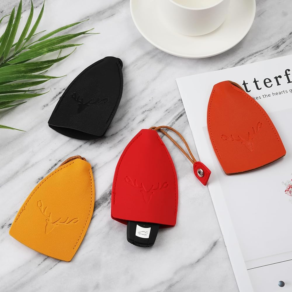 Stylish Key Bag: There are 4 colors of our cute key fob cases that you can choose freely, including black, yellow, red and orange. Our pull out key holders are not only a multifunctional accessory, but also a stylish statement. Every purchase comes with a car key case and keychain in four classic colorways. Key pouches are perfect for home and sharing with friends.