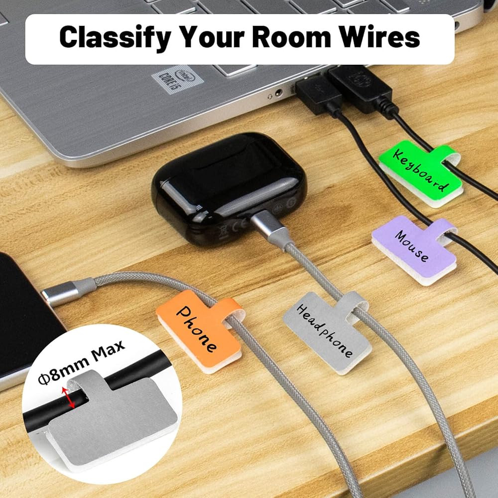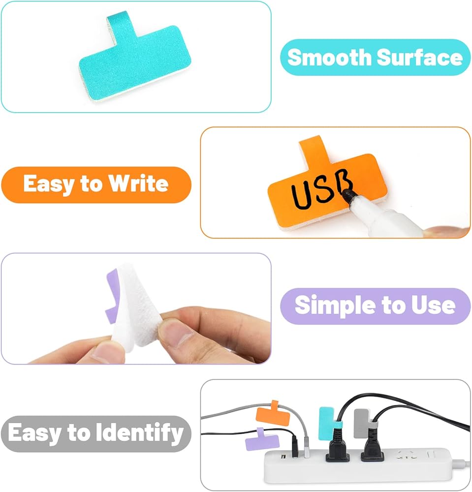 Easy to identify, save yourself from telling messy cables now! Excellent cableorganizer in the office or at home.