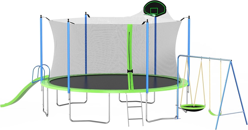 ميزات ممتعة - القفز أكثر متعة مع إضافة هدف كرة السلة، مما سيبقي أطفالك مشغولين طوال اليوم. يشتمل هذا الترامبولين أيضًا على أرجوحة وشرائح بلاستيكية ليلعب عليها الأطفال. ترامبولين هدية رائعة للأطفال.