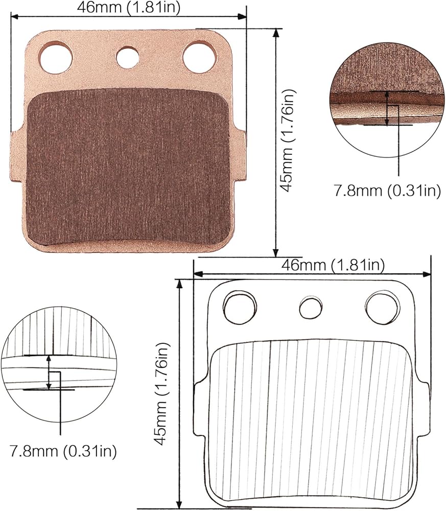 الحجم: 46 × 45 × 7.8 ملم، وسادات الفرامل المصنوعة من النحاس الملبد تم تصنيعها وفقًا لمعايير OEM.
