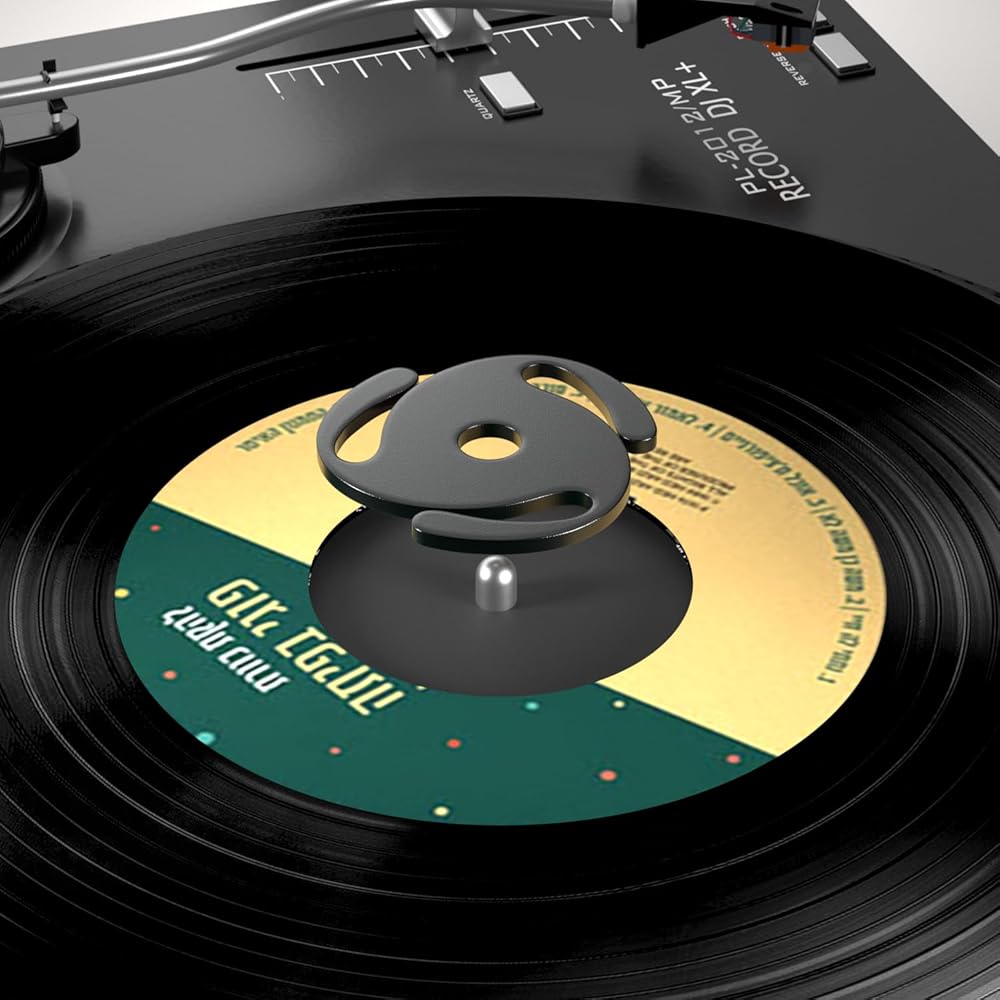 【مادة ممتازة】-- إدراج سجل 45 دورة في الدقيقة مصنوع من الألومنيوم عالي الجودة، وهو أكثر استقرارًا ومتانة من المحولات البلاستيكية الشائعة. فهو لا يزيد من الاتصال بين السجل والسجل فحسب، بل يعمل أيضًا على تحسين جودة الصوت مع تقليل الرنين والاهتزاز.
