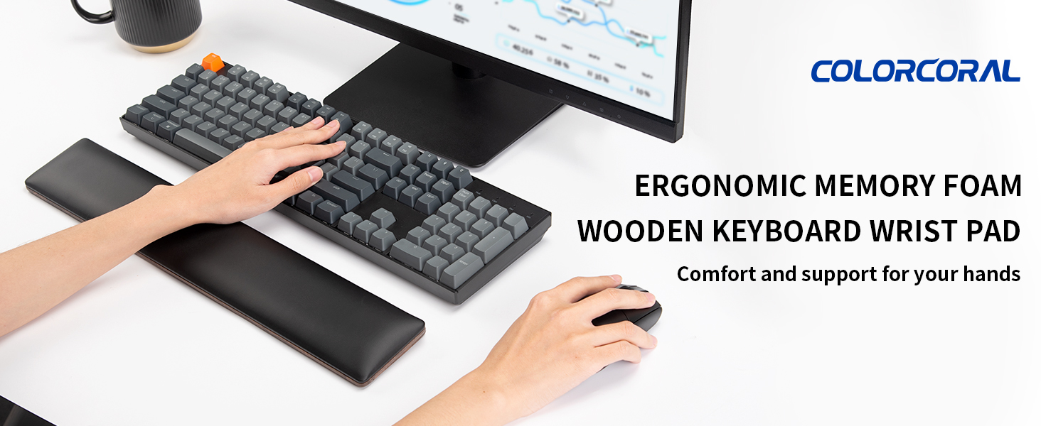 مسند معصم مريح للوحة المفاتيح من COLORCORAL مع وسادة معصم مريحة من إسفنج الذاكرة المتين من خشب الجوز لدعم معصم لوحة المفاتيح مع قاعدة مطاطية مضادة للانزلاق لكتابة الراحة وتخفيف الألم للمكتب والألعاب