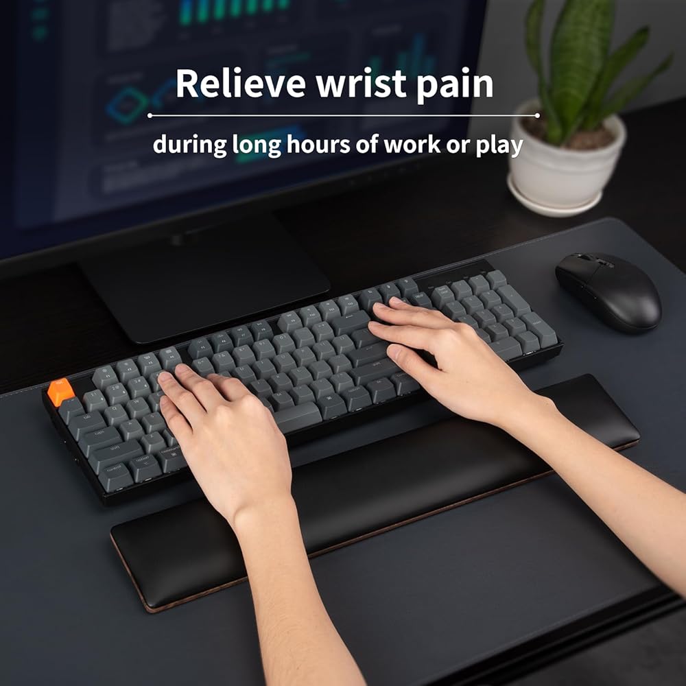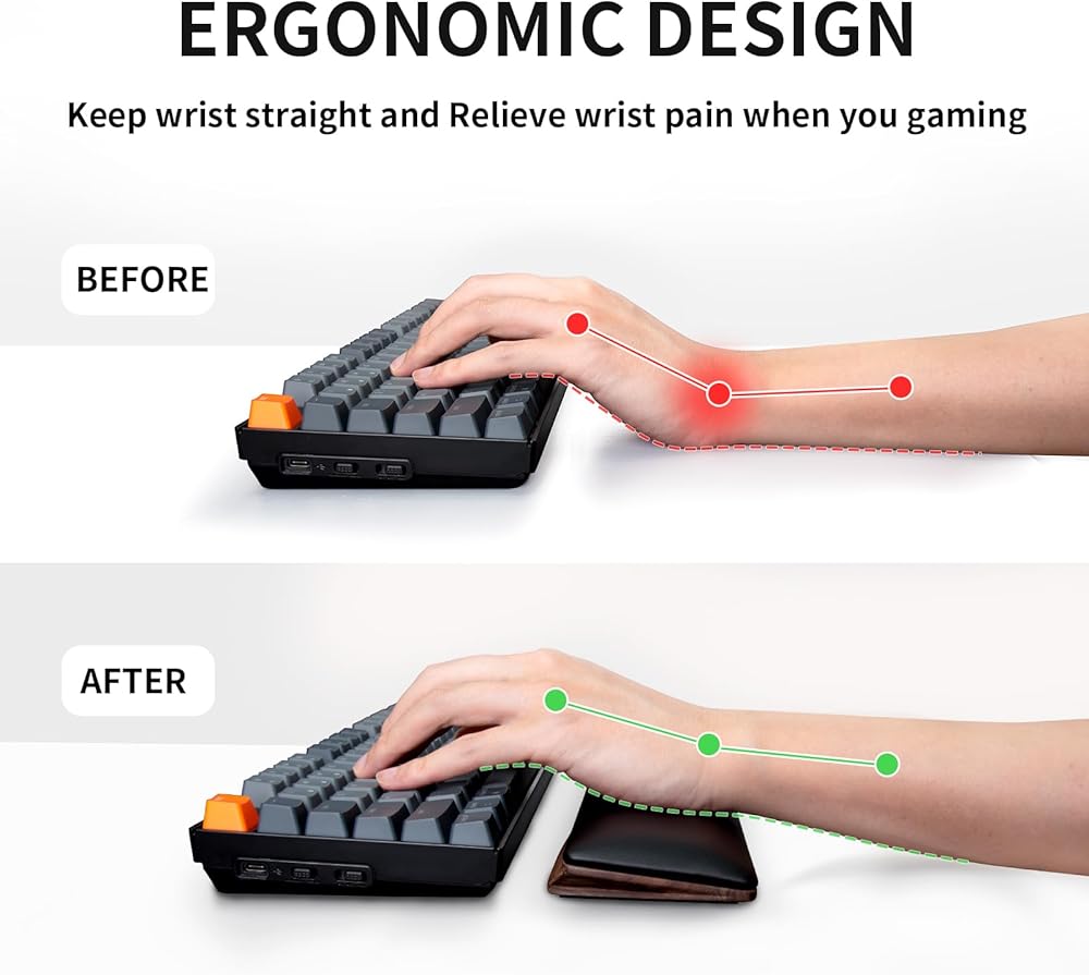 صديق للبيئة ومتين: يستخدم الجزء السفلي من لوحة المفاتيح خشب الجوز من مصادر مستدامة باعتباره المادة الرئيسية للمتانة ومقاومة التلف. تمنح حبيبات الخشب الفريدة كل دعم معصم كمبيوتر جماليًا فريدًا