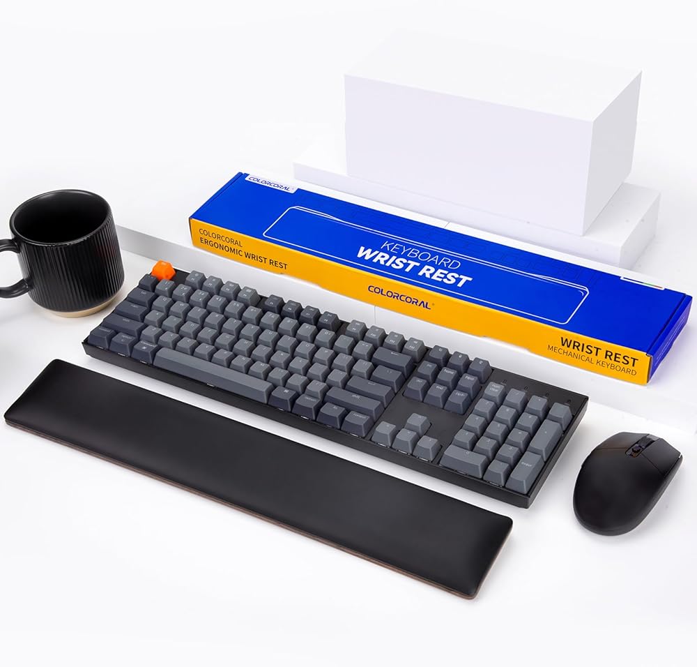 مزيج من المواد الممتازة: مسند المعصم الملون مصنوع من الجلد الفاخر وإسفنج الذاكرة عالي الكثافة، مما يوفر لمسة وراحة لا مثيل لها للحفاظ على معصمك في وضع محايد. يوفر الجلد الجميل والمتين دعمًا شخصيًا ويمكن الحفاظ عليه نظيفًا بسرعة باستخدام مناديل مبللة