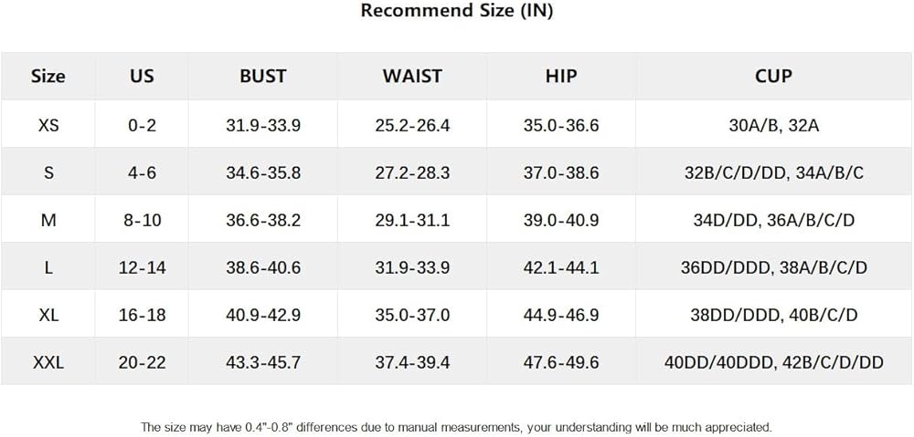 Please refer to the size chart before ordering sexy one piece bathing suit. The size may have 0.4"--0.8" differences due to manual measurements, your understanding will be much appreciated.