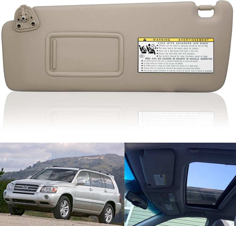 NHILES سائق الجانب الأيسر واقي من الشمس متوافق مع تويوتا هايلاندر 2004-2007 رقم الاستبدال 74320-48260-A0 بيج