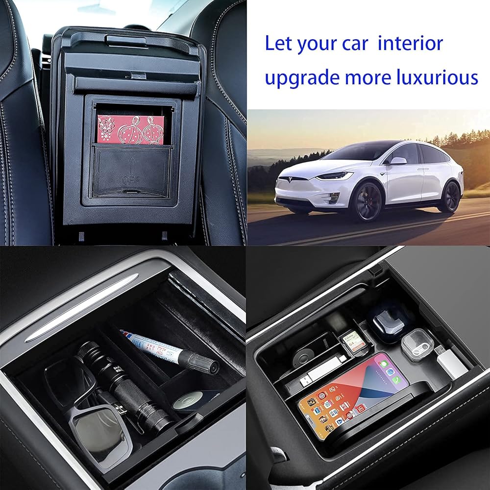 [وظيفة قوية] ✔️صُنعت صواني وحدة التحكم المركزية طراز Tesla 3/Y هذه بعمق شديد بحيث تناسب النظارات أو الأقلام وأقلام الرصاص ذات الحجم الأكبر، والهواتف الذكية، والمحفظة، والمفاتيح، وبطاقة ركن السيارة، وبطاقة العمل، وبطاقة الهوية، والأنسجة، وأحمر الشفاه، والسجائر، ولاعة، إيصال، علكة، قرص USB، عملات معدنية، إلخ.