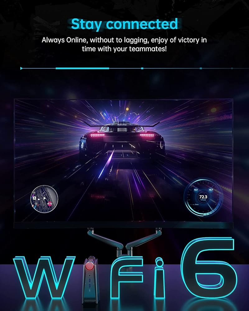 • ابق على اتصال مع منفذ 1G RJ45 الخاص بجهاز Mini Gaming PC وراديو WiFi 6 القياسي، مما يعزز ذروة عرض النطاق الترددي للواجهة والكفاءة والموثوقية، مع زمن وصول أقل وتأخر أقل. تعمل تقنية Bluetooth 5.2 على إبقاء جميع ملحقات Bluetooth الخاصة بك متصلة بسلاسة.