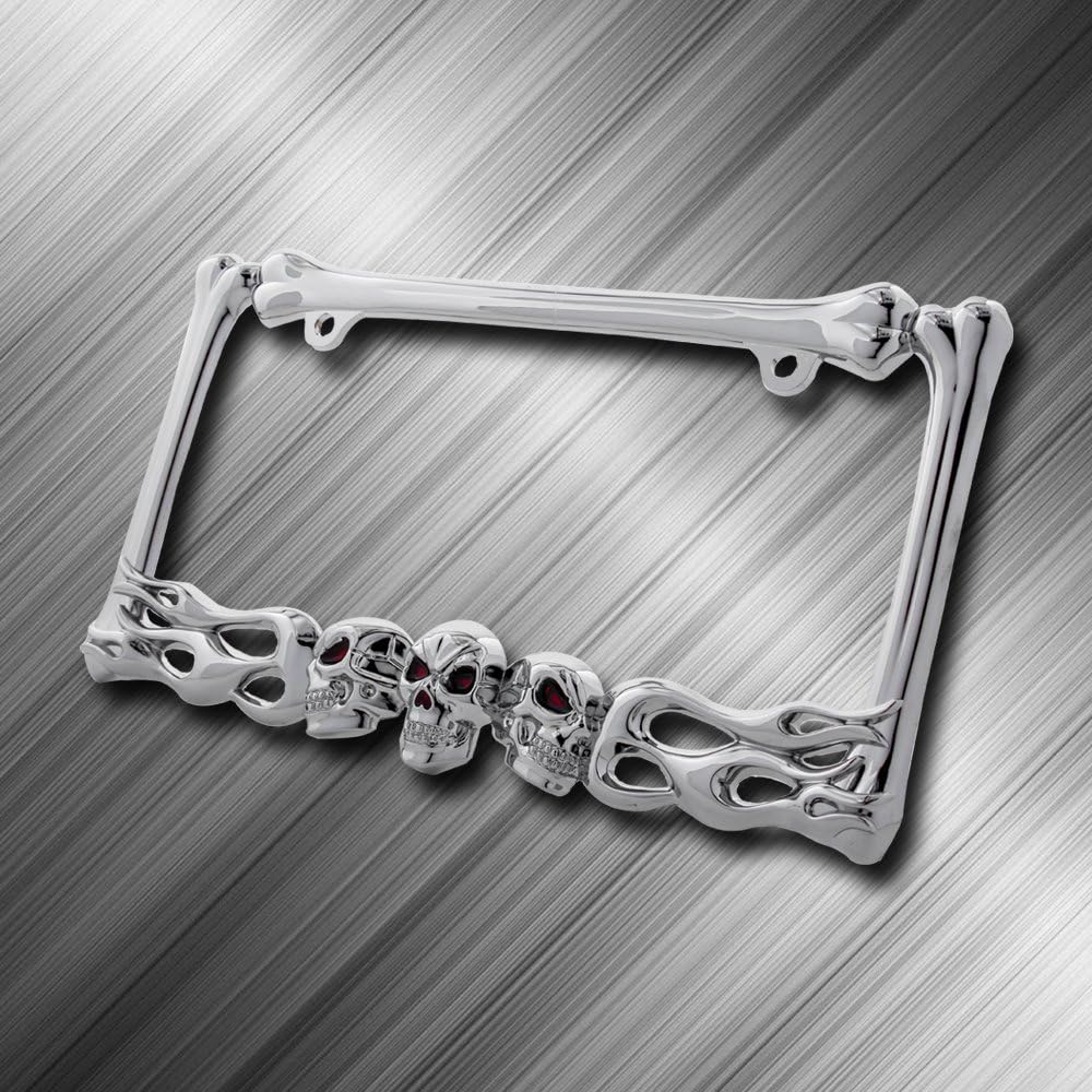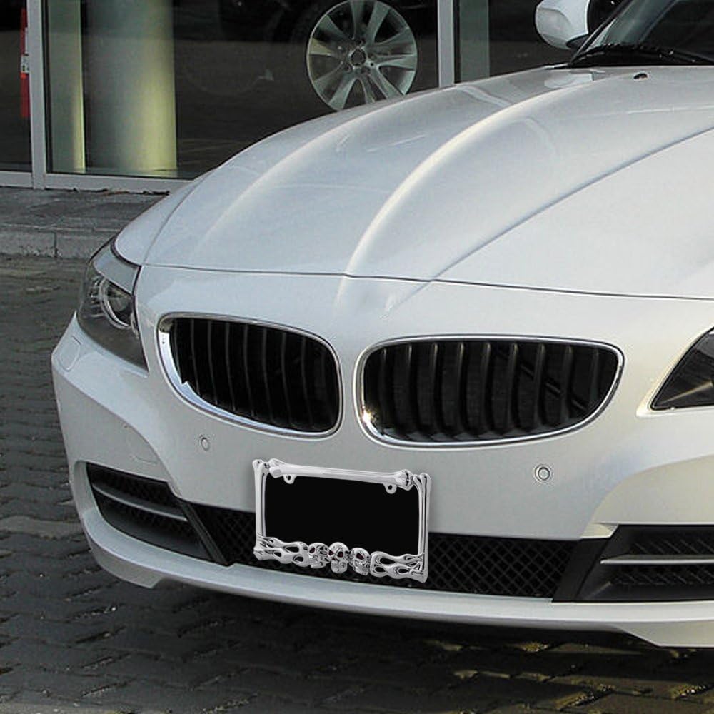 The Pilot Automotive Skull and Flames License Plate Frame is a statement accessory. Sure, it performs the desired function of being a license plate frame, but it does it in a certain way that presents the diver as one not to be messed with. Bolt it on and drive in good health.