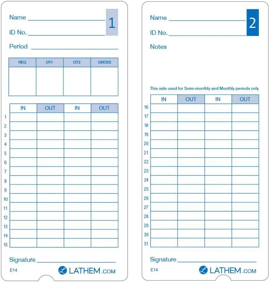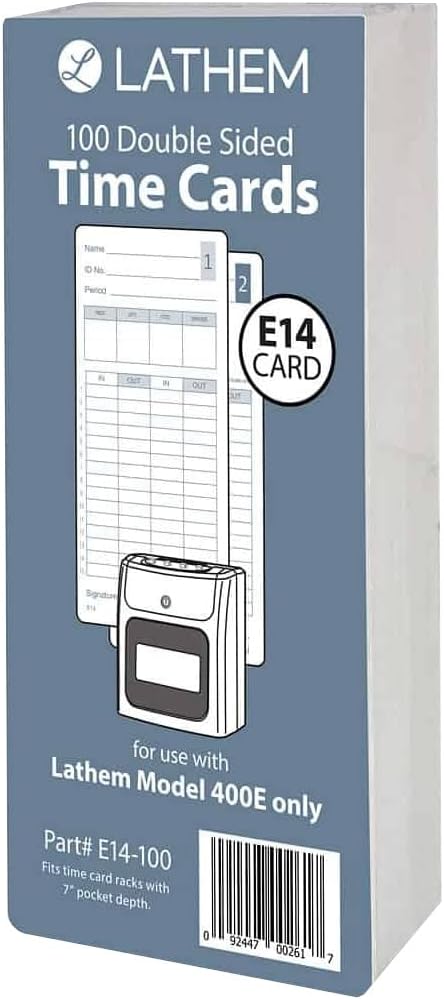 Lathem E14-100 Pack of 100 Time Cards, 2-sided, For use with Lathem Model 400E Time Clock, 7" High