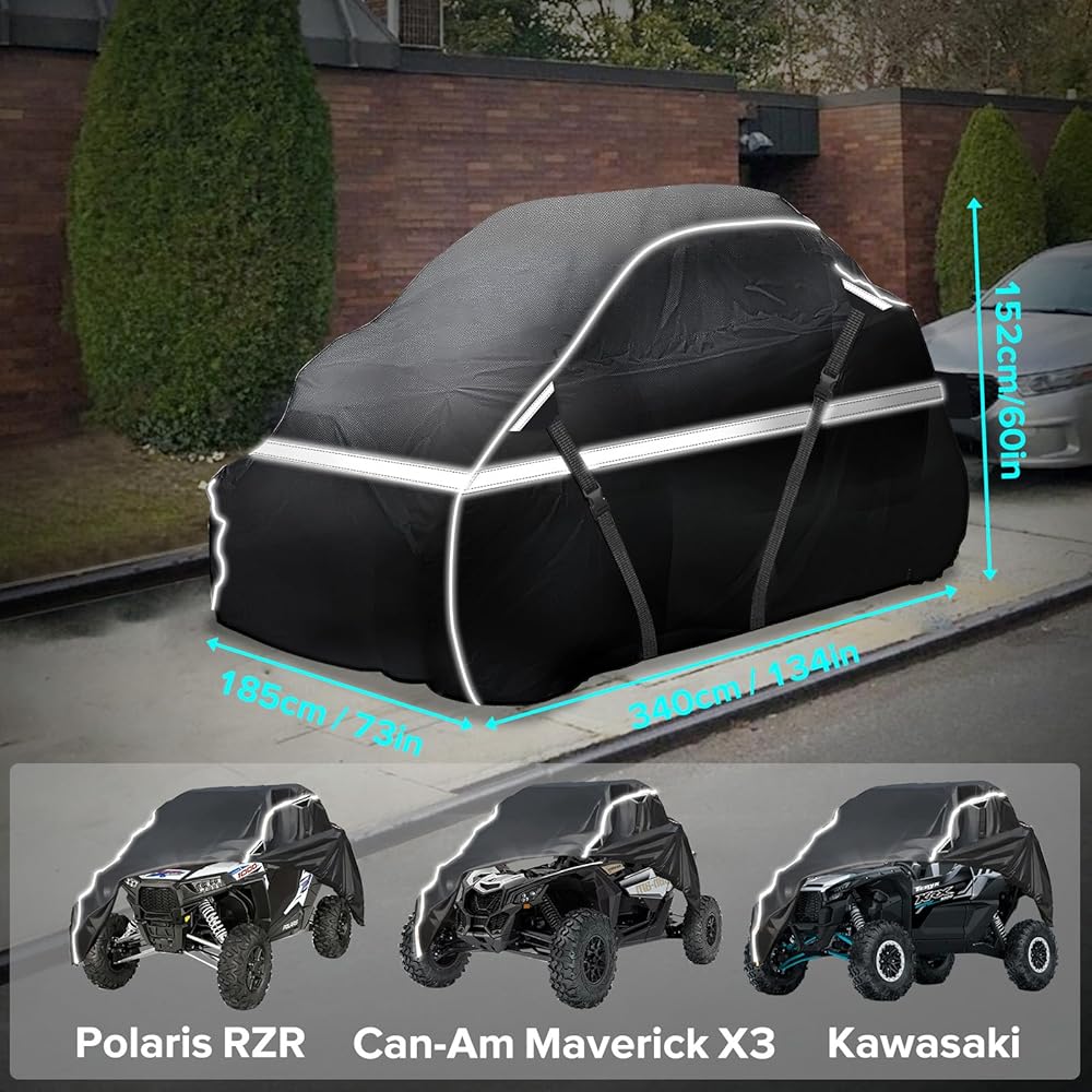 غطاء UTV، قماش أكسفورد عالي التحمل مقاوم للماء 2-3 مقاعد، غطاء حماية من جميع الأحوال الجوية جنبًا إلى جنب متوافق مع Can Am Maverick X3 Polaris RZR Ranger SXS