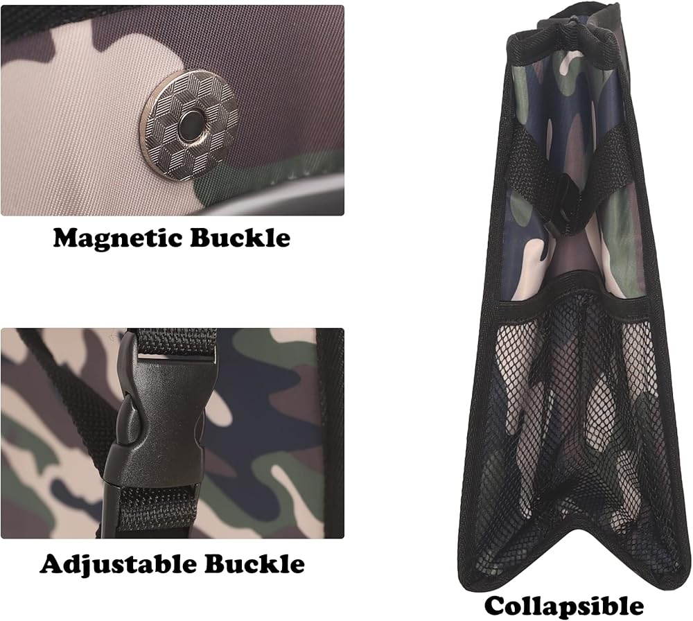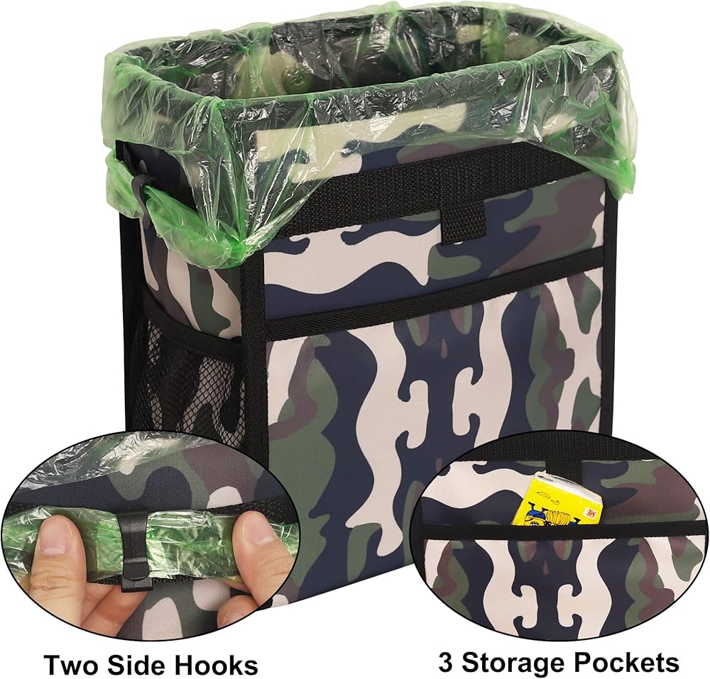 الحجم - حجم كيس قمامة السيارة هو 9.25*5.25*10.75، ويمكن طيها عند عدم الاستخدام دون شغل مساحة كبيرة في السيارة. يمكن أن يكون ديكورًا مثاليًا للسيارة لجميع أنواع المركبات، بما في ذلك السيارات والشاحنات والشاحنات الصغيرة ومركبات الطرق الوعرة وRVs والمخيمات وما إلى ذلك.