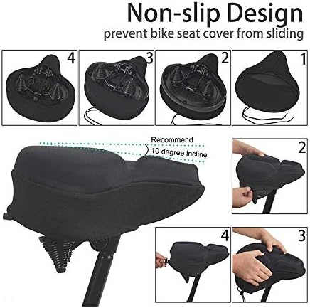 The bike seat cover have anti-skid leather, draw-string, it can keep the bicycle seat cover stay still on the seat. Don't need any other tools, slip the bike seat cushion over the seat, secure the draw-string and straps, keep our exercise bike seat cover on the seat.