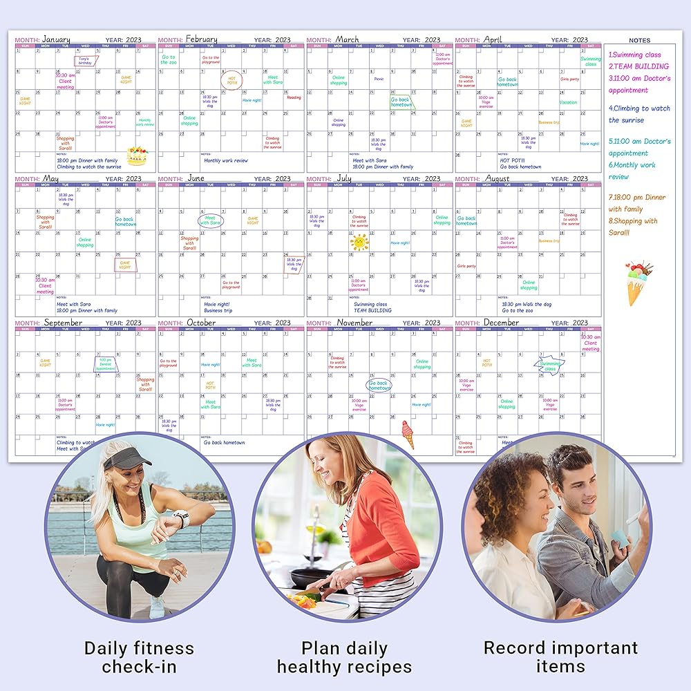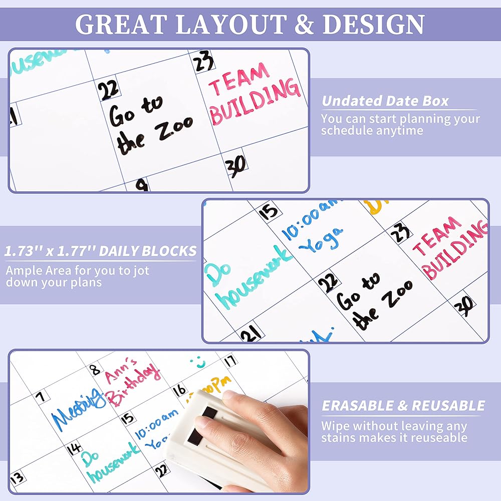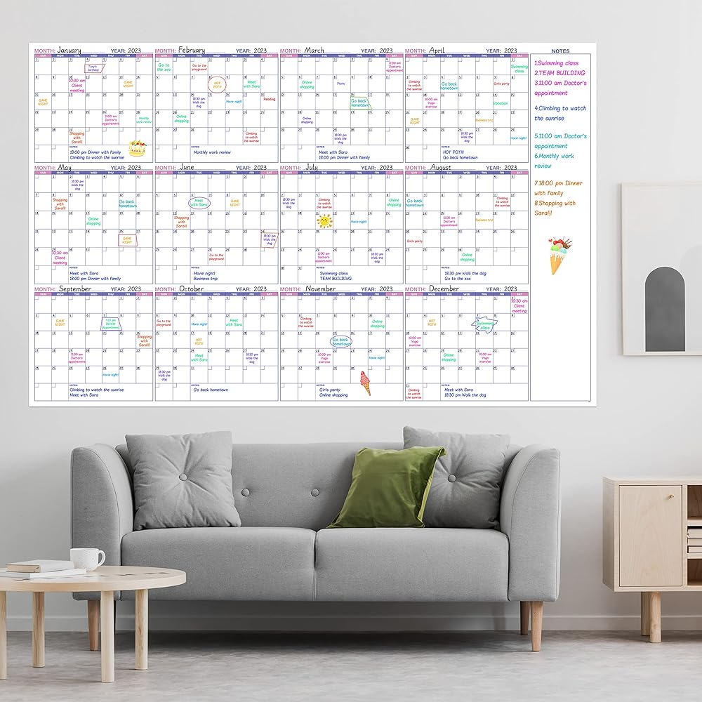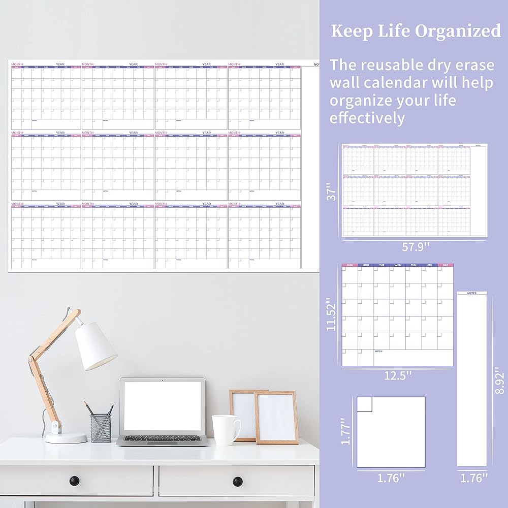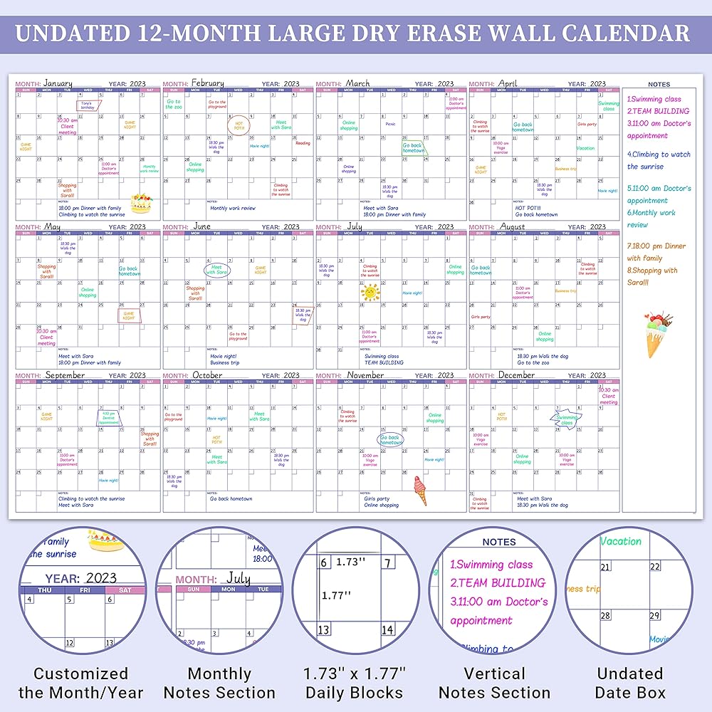 تقويم مسح جاف كبير للجدار - تقويم جداري بتصميم غير مؤرخ لمدة 12 شهرًا، مسح جاف، 91.48 سم × 58 بوصة، تقويم/ملصق للفصل الدراسي مصفح قابل للمسح وإعادة الاستخدام مع 15 ملصقًا دائريًا، كتلة يومية فارغة (1.76 بوصة × 1.77 بوصة) للجدار كتابة. مثالي للاستخدام في المنزل والمكتب والمدرسة.