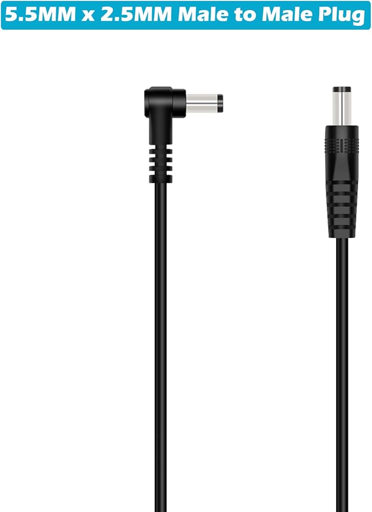 L-Shape 5.5mm x 2.5mm male to male DC adapter power supply cable, convert straight plug to 90 degree right angle plug power cord.