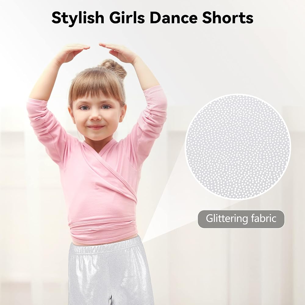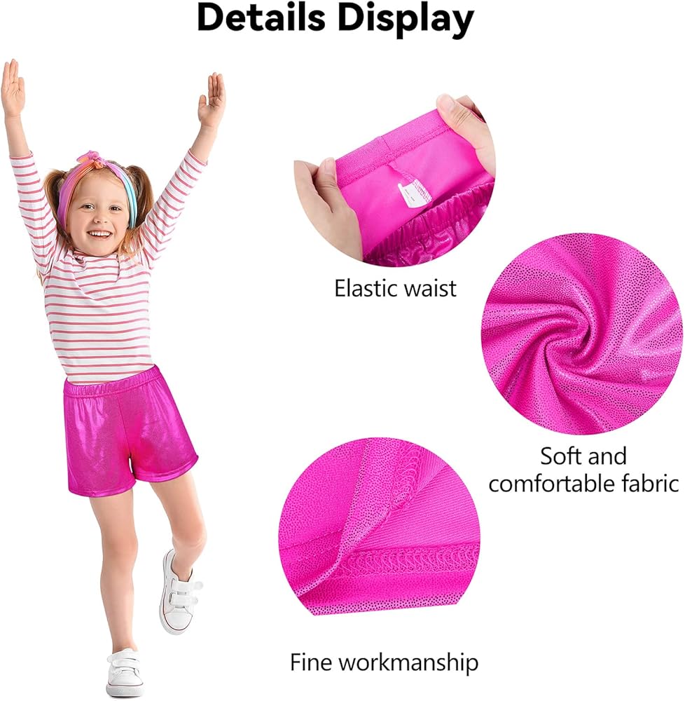 Glitter dance shorts: our girls dance shorts will glitter under light, which will increase the overall sense of fashion and reflect your personal style and taste; these glitters are blended with the fabrics, so you don't need to worry that the glittering effect of the dance shorts will disappear due to normal use
