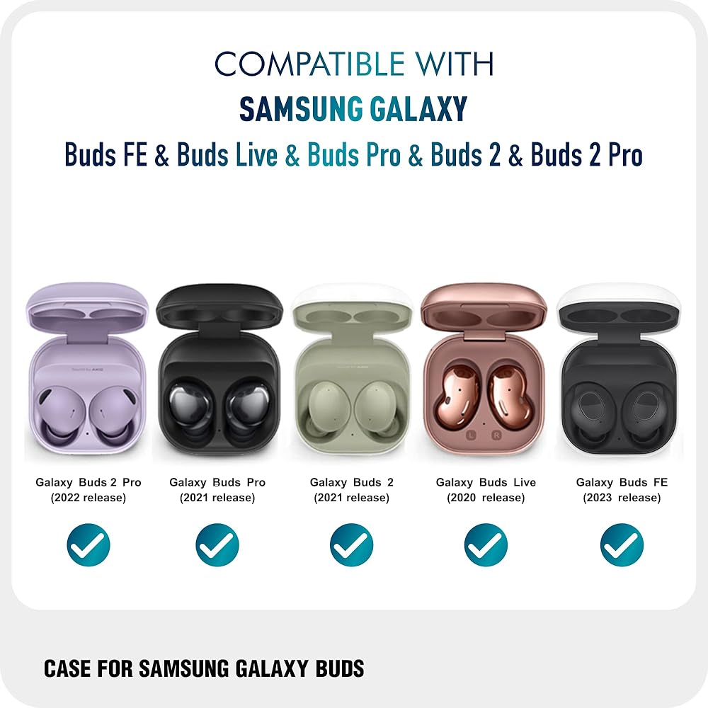 【 ملاءمة مثالية 】: متوافق مع Galaxy Buds Pro 2/ Galaxy Buds 2/ Galaxy Buds Pro/ Galaxy Buds Live. بفضل هيكل التثبيت المصمم خصيصًا، يمكن لهذه الحافظة أن تحمل جهازك بشكل أفضل.
