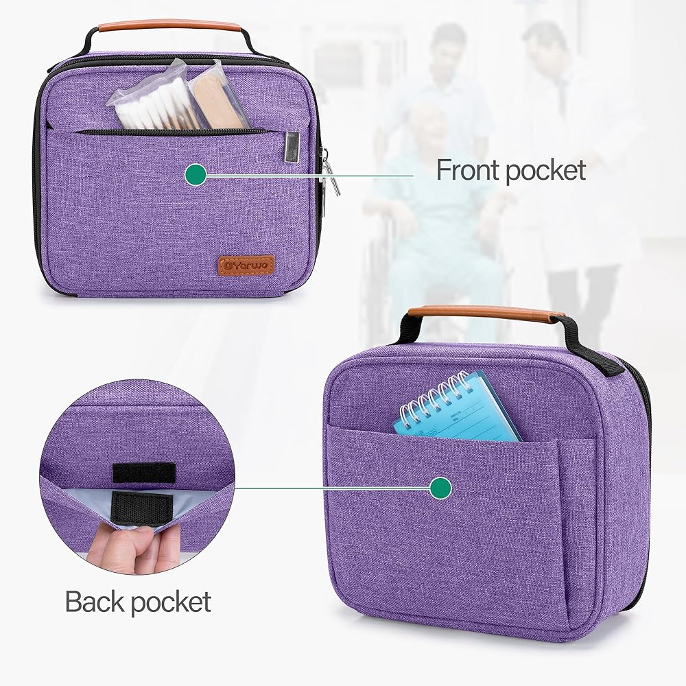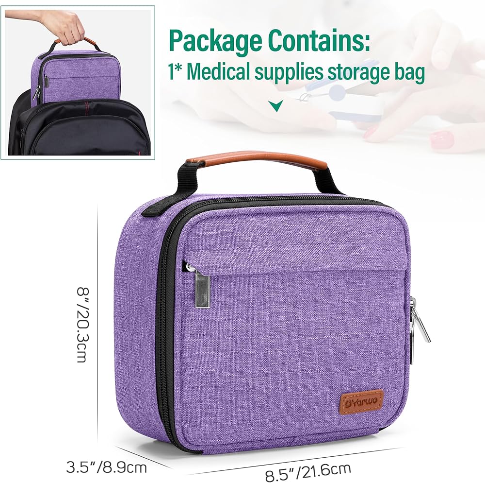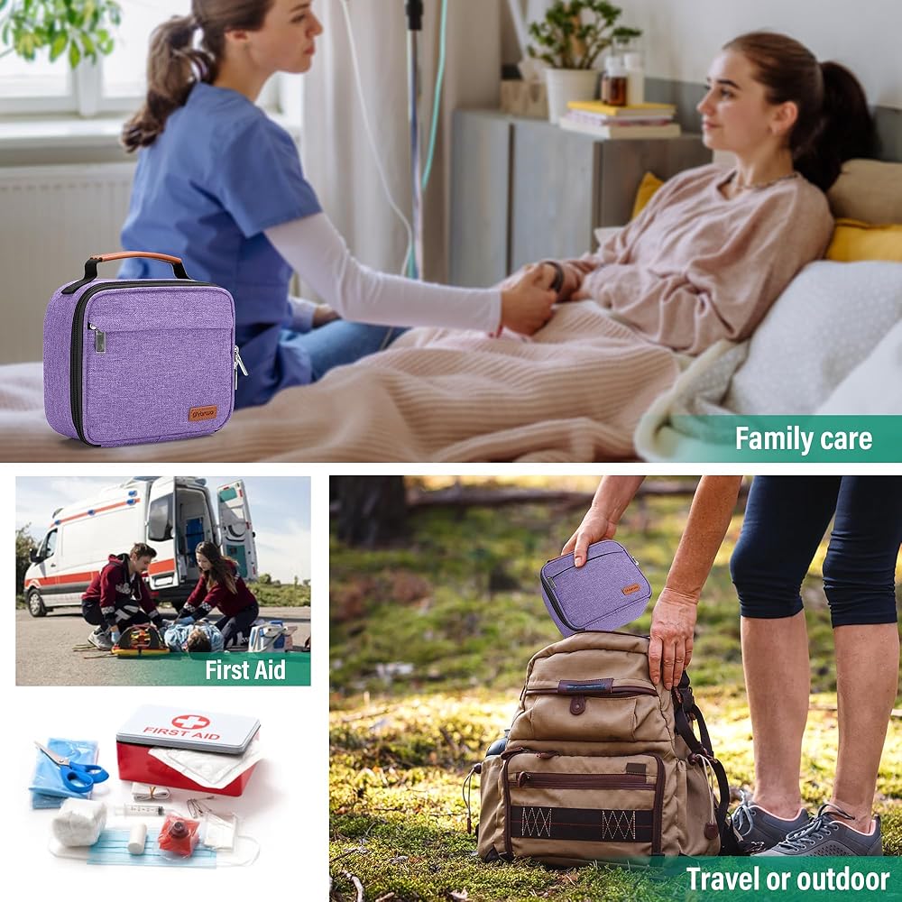 متعددة الأغراض - تحتوي حقيبة تخزين الأدوية الصغيرة على تطبيقات واسعة، ويمكن استخدامها كصندوق إسعافات أولية، وحقيبة مستلزمات مرض السكري، وحقيبة زجاجات حبوب الدواء، وحقيبة تخزين المعدات الطبية وما إلى ذلك. احزم كل ما تحتاجه بسرعة.