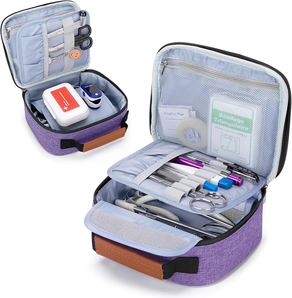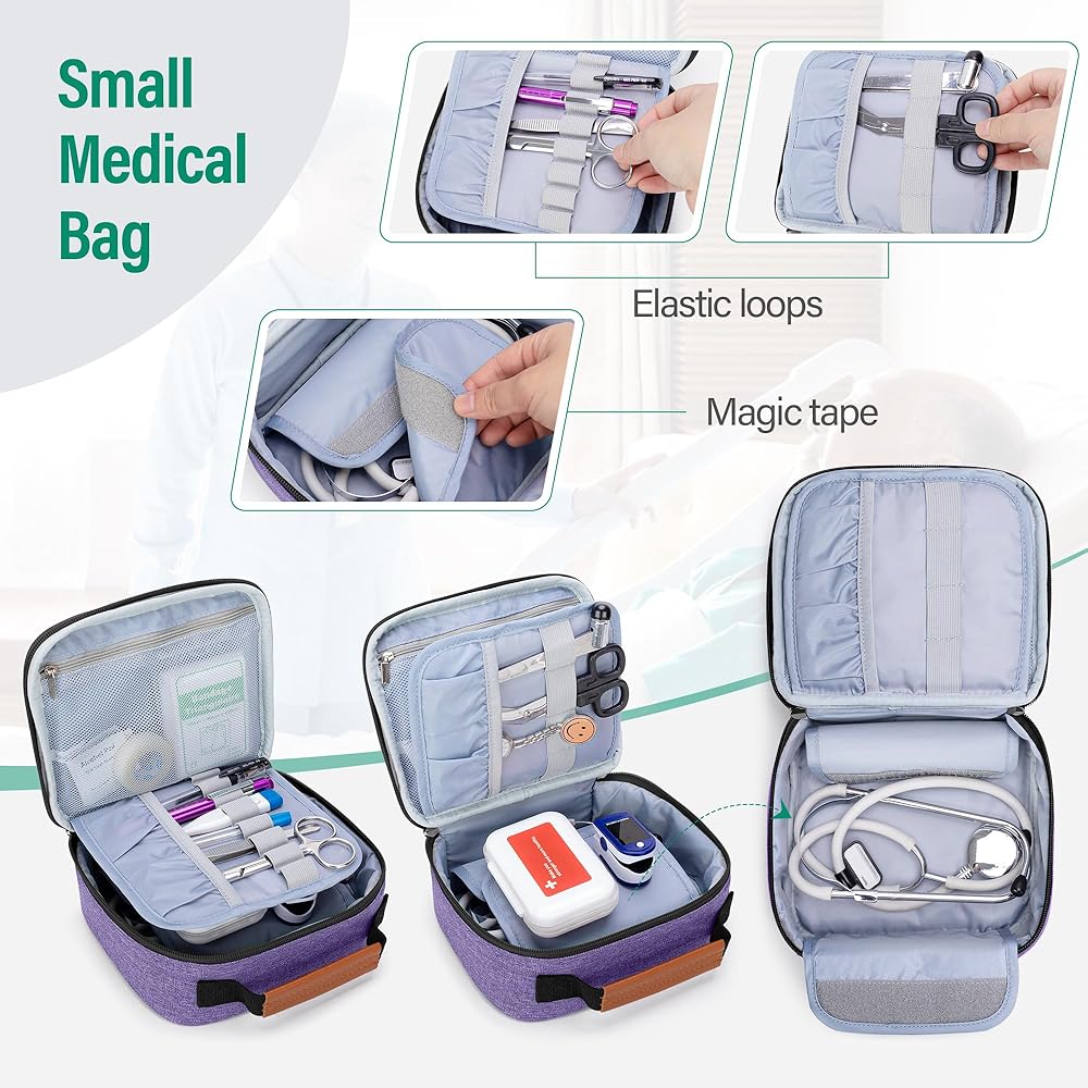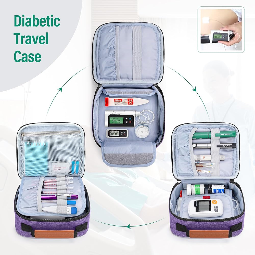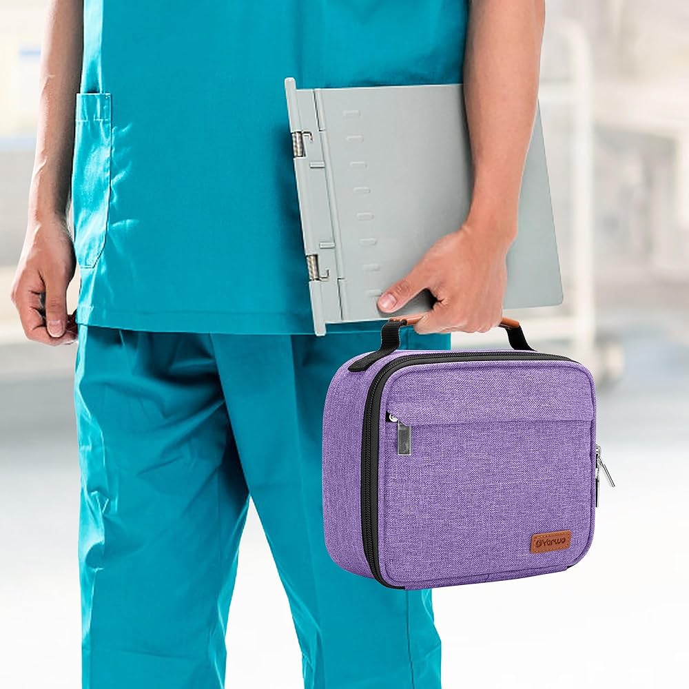 متعددة الأغراض - تحتوي حقيبة تخزين الأدوية الصغيرة على تطبيقات واسعة، ويمكن استخدامها كصندوق إسعافات أولية، وحقيبة مستلزمات مرض السكري، وحقيبة زجاجات حبوب الدواء، وحقيبة تخزين المعدات الطبية وما إلى ذلك. احزم كل ما تحتاجه بسرعة.