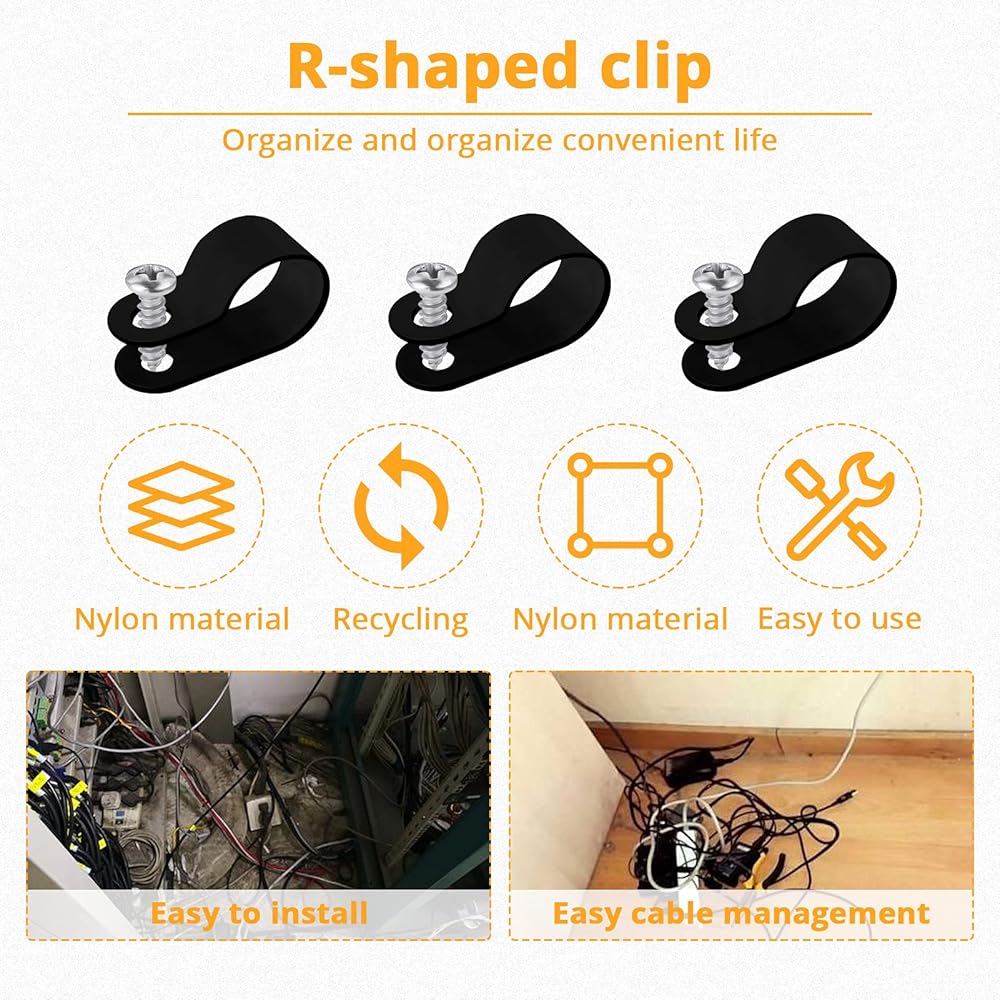 التطبيق: مصابيح التثبيت، وأسلاك طاقة الأجهزة المنزلية، وكابلات الأسلاك، وكابلات LAN، وأجهزة الكمبيوتر وكابلات الطاقة، والعزل. يعد المشبك من النوع R جيدًا لإدارة الأسلاك والأسلاك وكابلات الكمبيوتر وكابلات التلفزيون والكابلات الكهربائية.