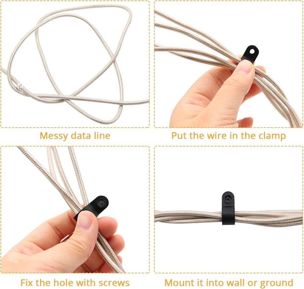 جودة عالية: مثبتات الكابلات مصنوعة من النايلون عالي الجودة، الذي يتميز بصلابة عالية وصلابة جيدة، ومرونة جيدة، ومقاومة قوية للتآكل، وخالية من الاختباء لن تؤذي السلك. تصنيف النار يصل إلى 94V-2.