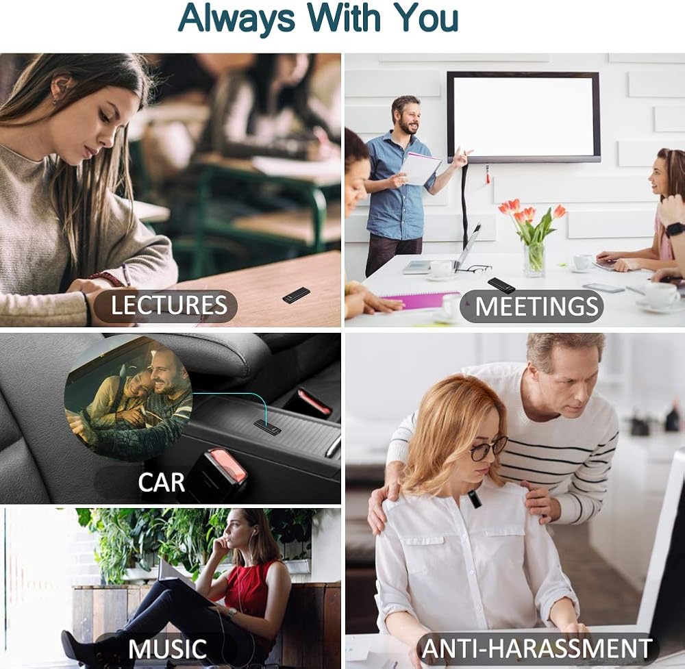 ⭐【مسجل محمول وقوي 】- يلبي كل ما تحتاجه بصوت واضح عالي الجودة باستخدام مسجل الصوت الرقمي المحمول (قياس 2.1 بوصة × 0.8 بوصة × 0.3 بوصة فقط، ووزن 0.59 أونصة فقط). PCM الاحترافي لديه تسجيل لا تشوبه شائبة الجودة مع تجربة ستيريو أصلية، شريحة GMY وتقليل الضوضاء DGC تجعلك تستمتع بتسجيل صوتي واضح وتشغيل للمحاضرات والاجتماعات والكلام والحصول على الأدلة وما إلى ذلك.