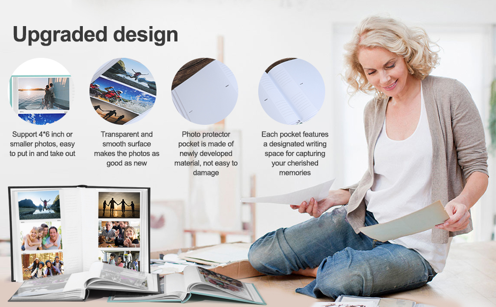 • ❤❸ تتميز ألبومات الصور مقاس 4x6 لدينا بمنطقة مذكرة بجوار كل صورة، مما يسمح لك بكتابة التاريخ والموقع والذكريات الخاصة المرتبطة بكل صورة. تجعل هذه الميزة الألبوم مثاليًا للاستخدام كألبوم صور عائلي.