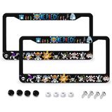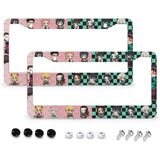 أنيمي إطار لوحة ترخيص السيارة 2 حزمة، لطيف أنيمي لوحة ترخيص يغطي حامل الديكور الألومنيوم علامة سيارة الإطار اكسسوارات السيارات للنساء الرجال 12.2 × 6.3 بوصة 2 فتحات مع مسامير (أنيمي 6)