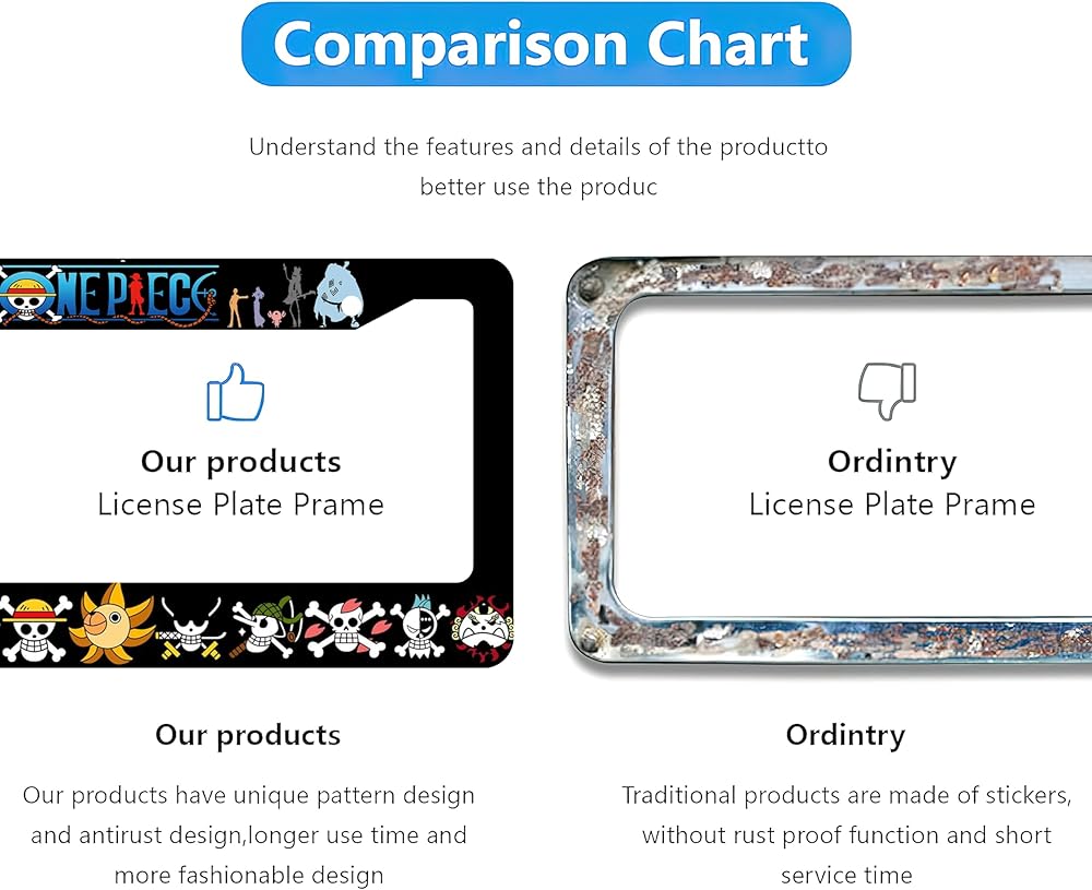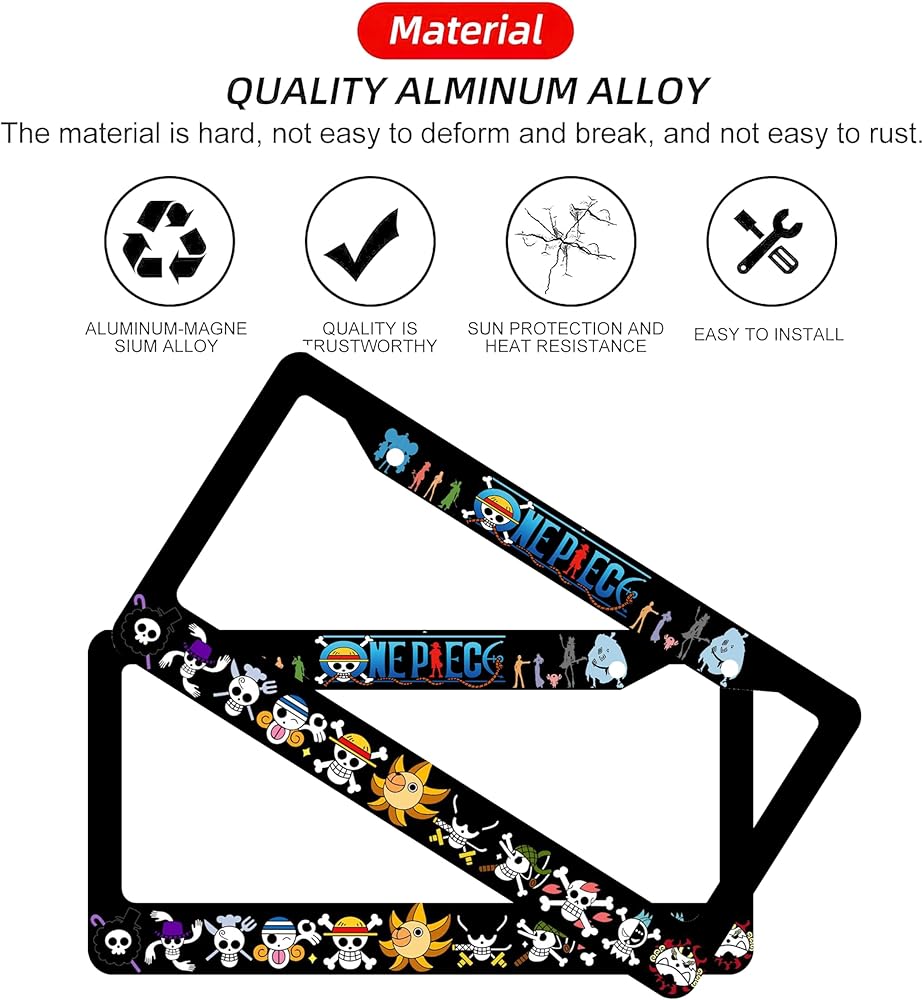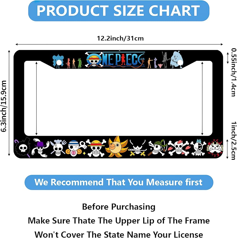 ▶Standard License Plate Frame Size: Our anime license plate frame size 12.2 X 6.3 inch(2 Pack). 2 Holes, license plate frame will not cover state name of your number plate, fits most standard American cars, suv, trucks, sedans.