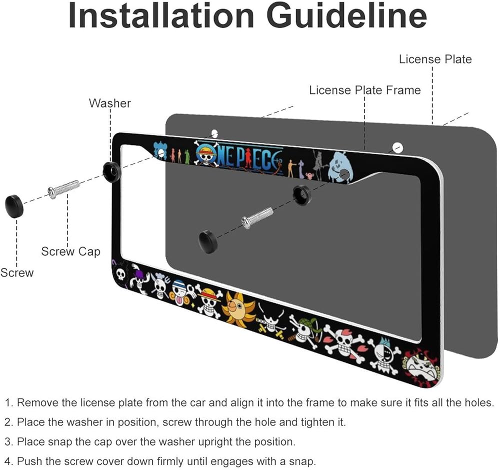 ▶Package Ingluding:2 Pcs anime license plate frame and each includes 4 screw caps, 4 screws, 4 washers.