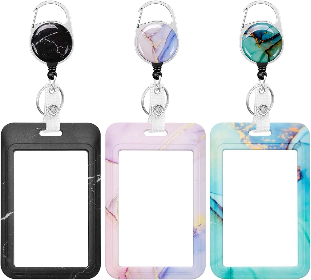 3 عبوات من حامل شارات الخدمة الشاقة مع بكرة قابلة للسحب، وبطاقة تعريف اسم العامل، ومشبك حلقة تسلق، وغطاء واقي للبطاقات العمودية للمكتب الرئيسي، والطبيب، والممرضة، ومدرس الطالب الطبي (3 قطع رخامية)