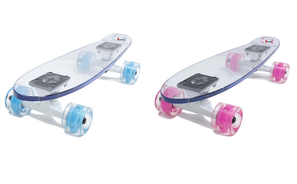 This skateboard is made in Korea-the home country of BTS. Polycarbonate, the material of deck, is used for astronaut helmets, airplane canopy and windows and the face shield of motorcycle helmets. Therefore, it is sturdy, non-breakable, and has a strong force to withstand shocks and loads. Durable for long distance riding. Fashion Skateboard for You to Show Your Life.