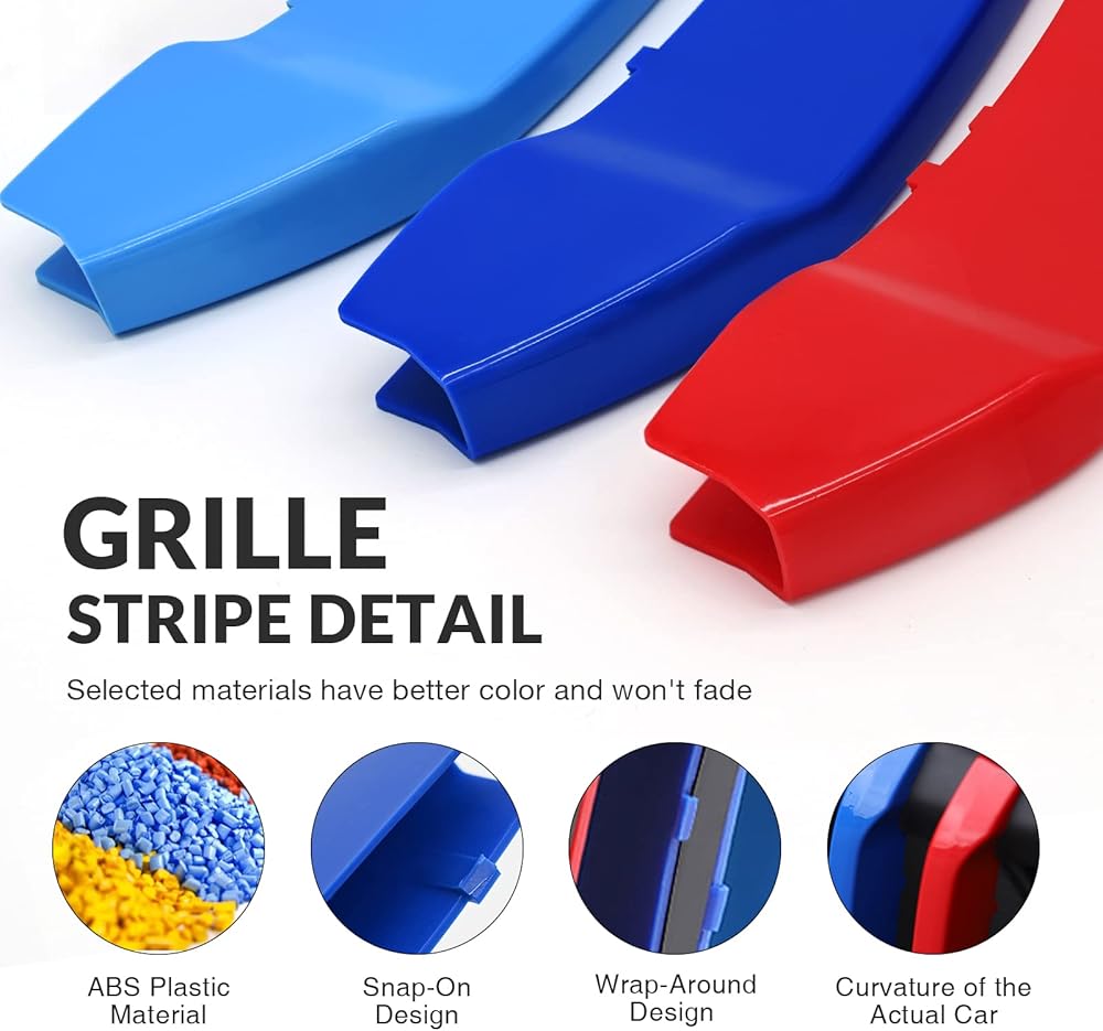 【ديناميكية وأنيقة】 3 ألوان من حشوات الشبكة الأمامية رقيقة وناعمة، مما يمنح سيارتك مظهرًا أكثر ديناميكية وأنيقة. قم بترقية سيارتك للحصول على مظهر فاخر.