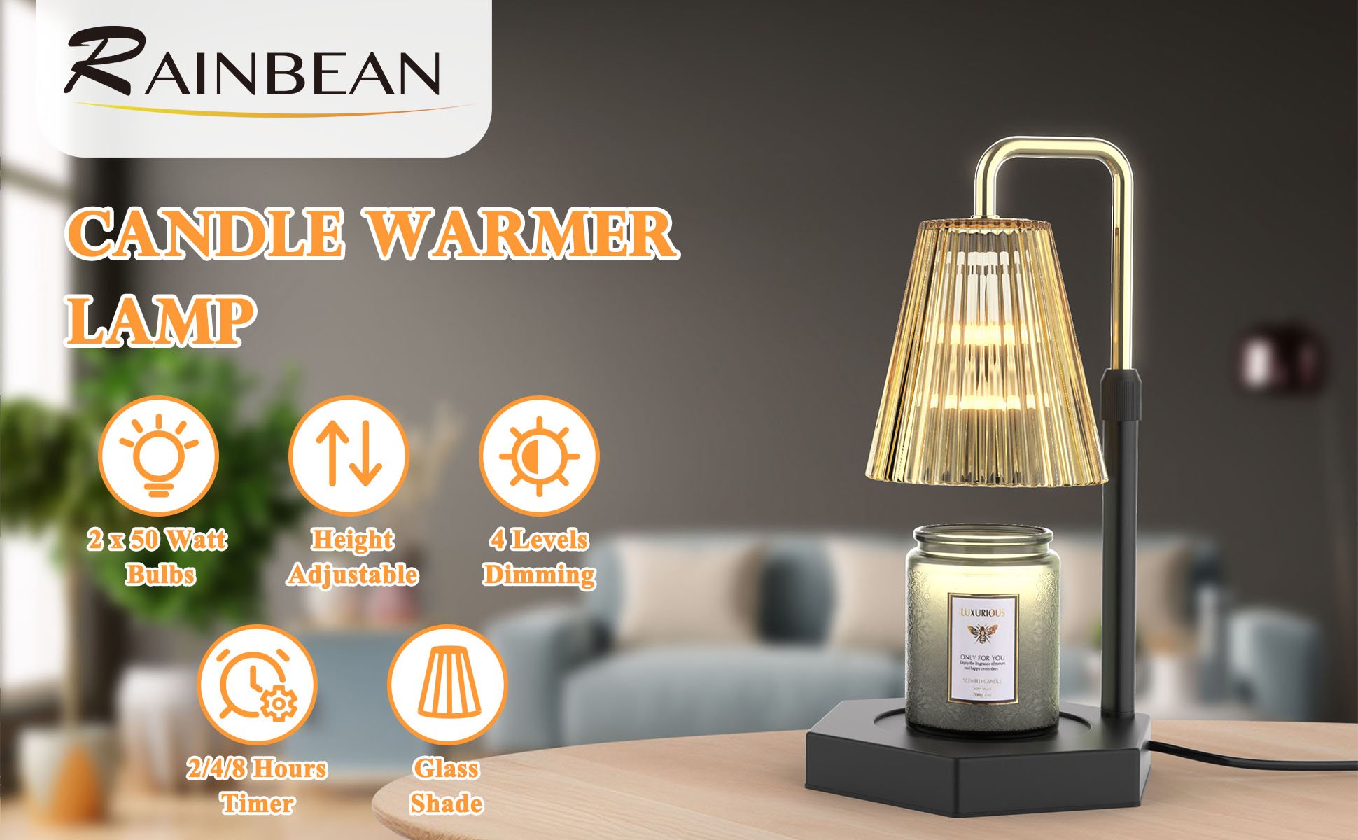 مصباح تدفئة الشموع من راينبين مع مؤقت وخافت ارتفاع قابل للتعديل، مصابيح شموع كهربائية قاعدة خشبية أكثر دفئًا لشموع الجرة، هدايا ديكور المنزل للنساء الأم